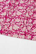 Pink Floral Print Split Neck Pleated Puff Sleeve Blouse