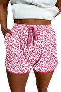 Pink Leopard Elastic Waist Lace up Contrast Trim Casual Shorts