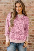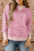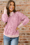 Pink Leopard Print Patchwork Crew Neck Sweatshirt