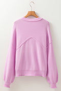 Pink Raw Edge Ribbed Detail Drop Shoulder Sweater