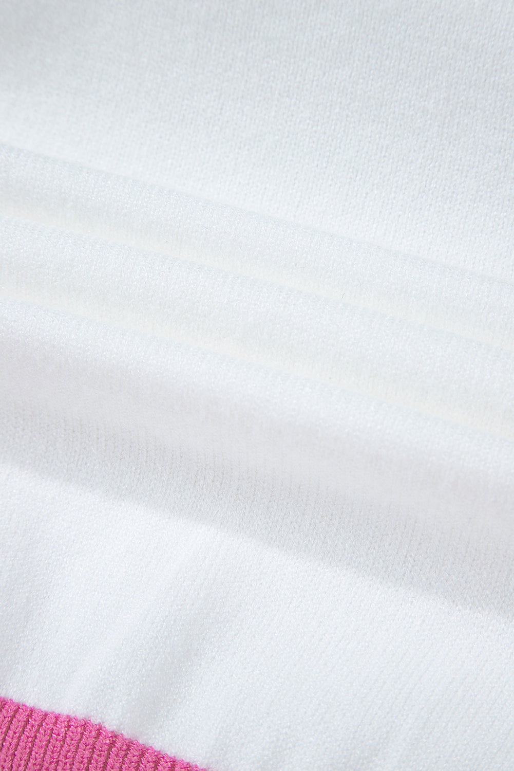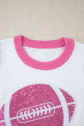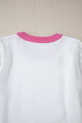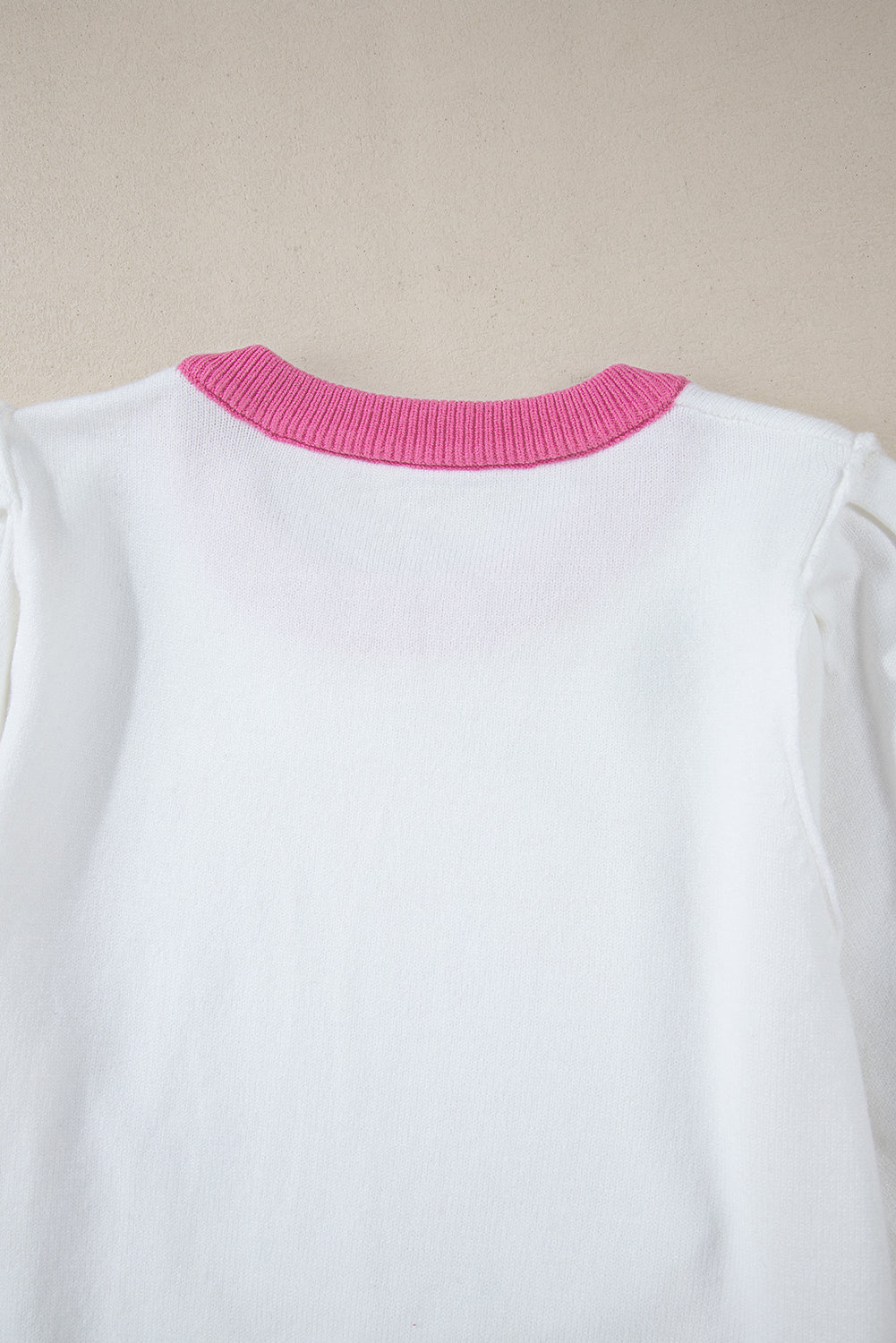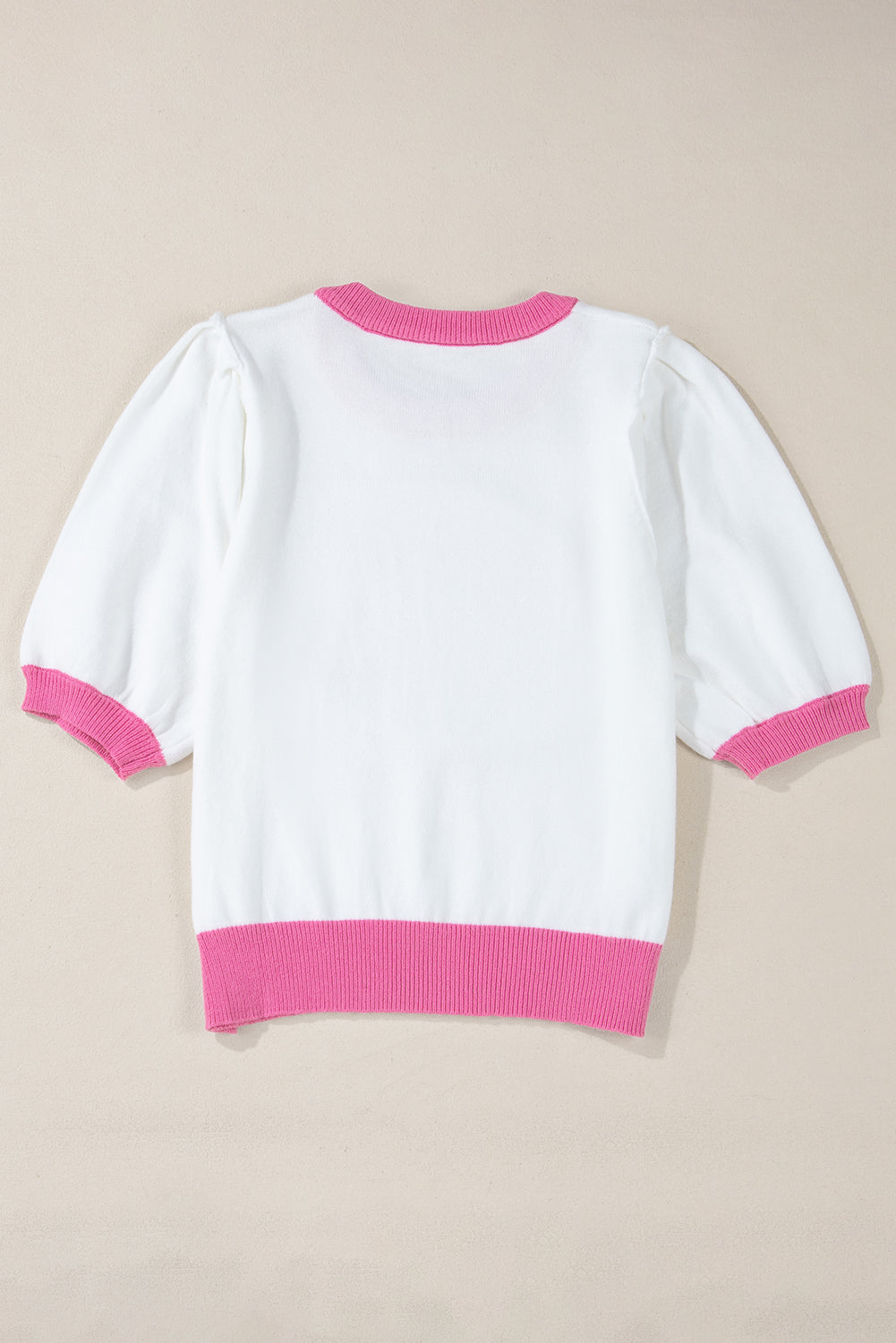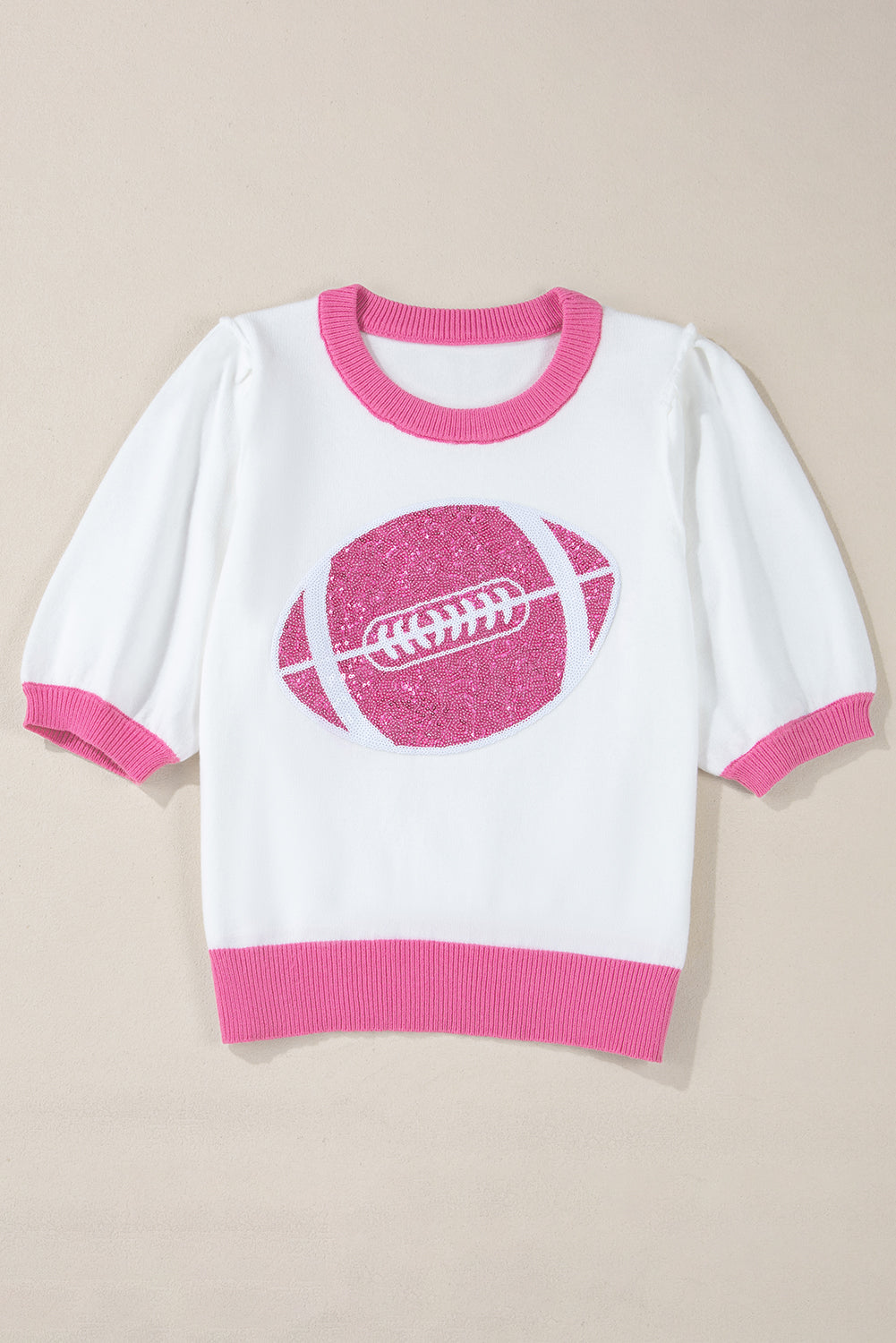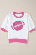 Pink Sequin Rugby Color Block Puff Short Sleeve Sweater