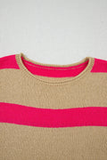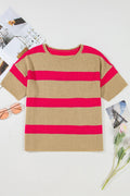 Pink Stripe Colorblock Short Sleeve Crew Neck Lightweight Sweater