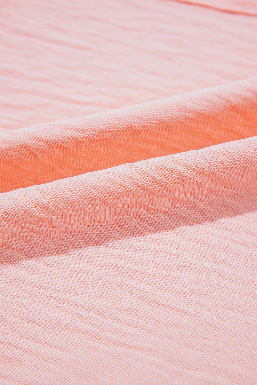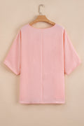 Sale Pink Textured Half Sleeve V Neck Plus Size T Shirt with Chest Pocket