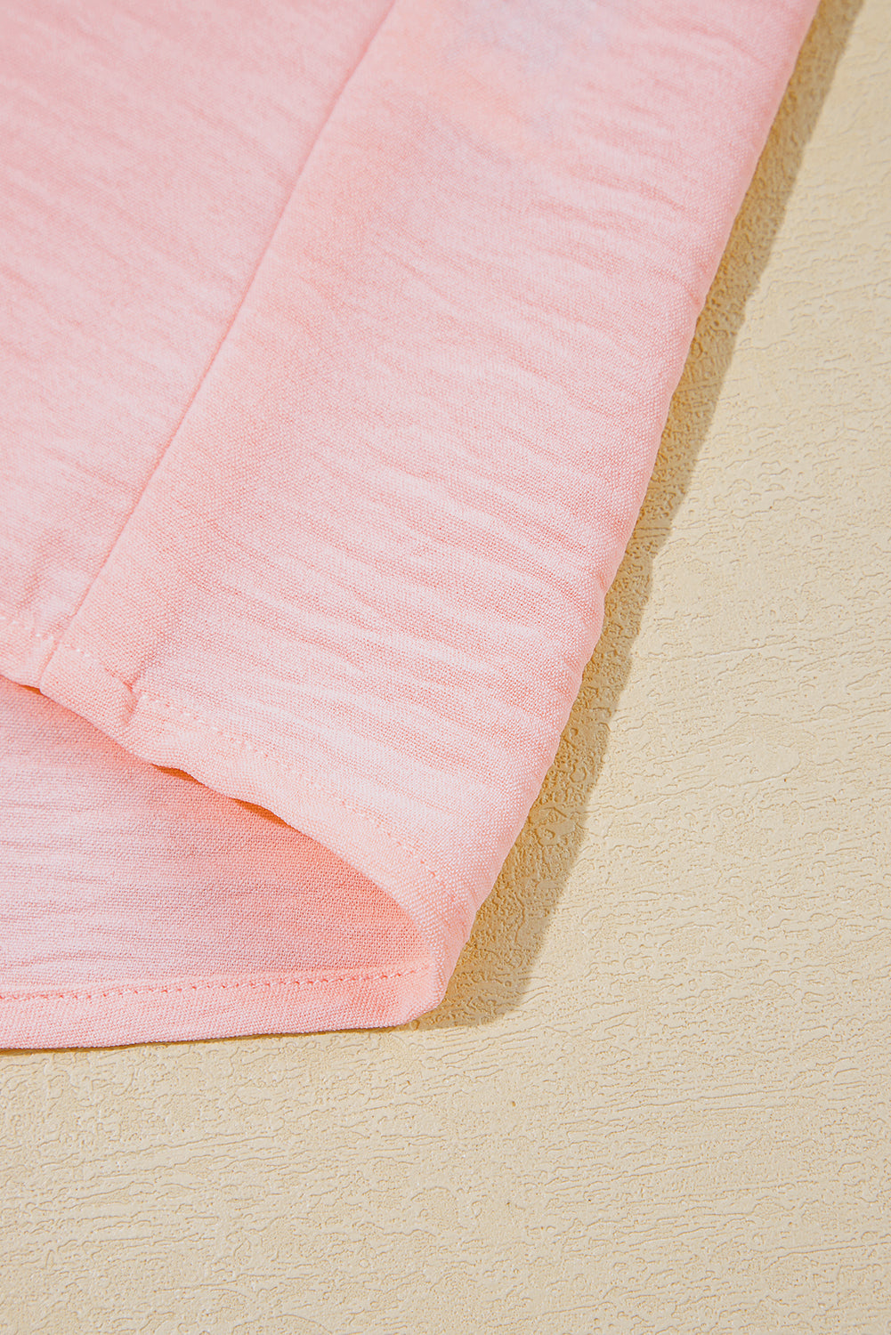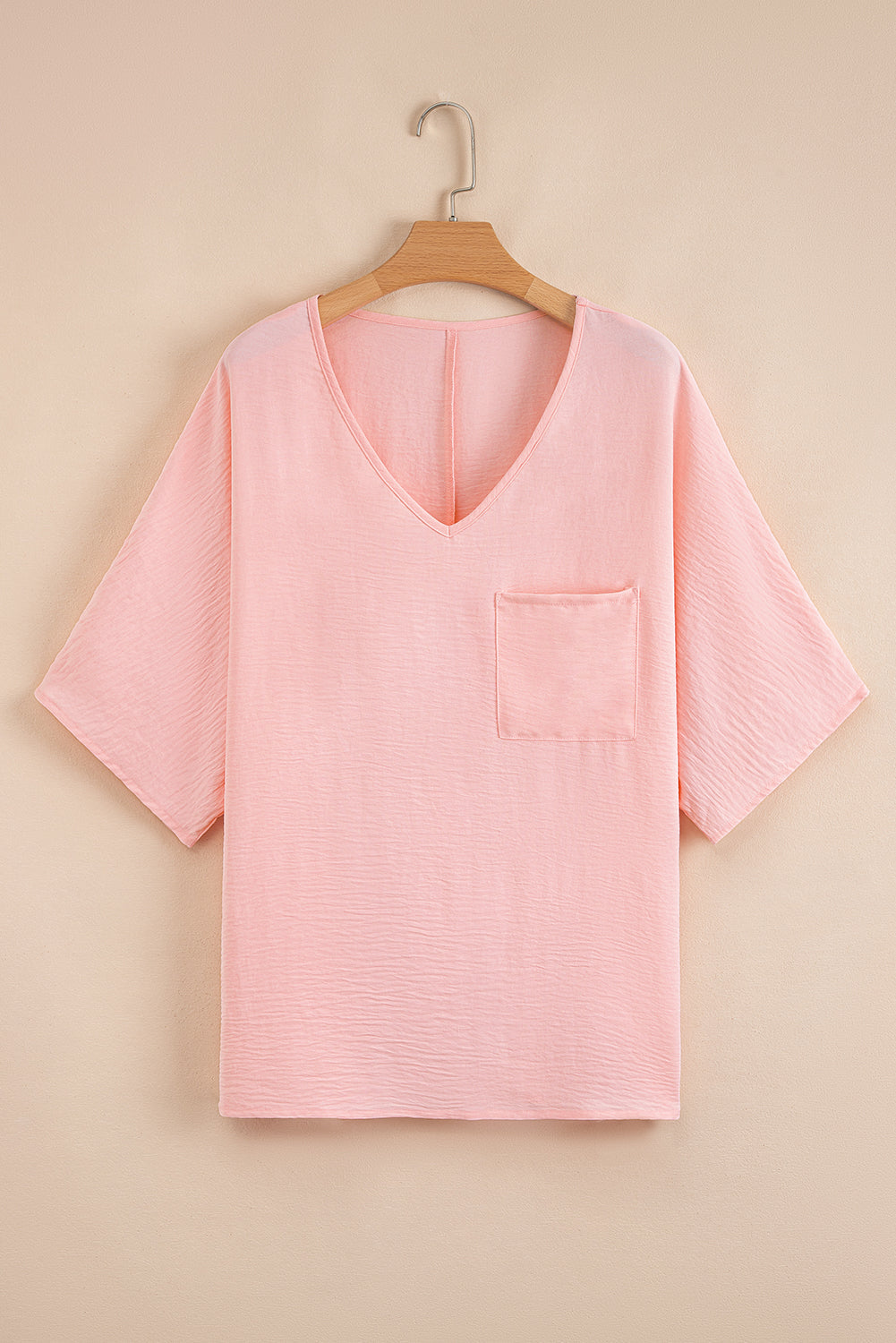 Pink Textured Half Sleeve V Neck Plus Size T Shirt with Chest Pocket