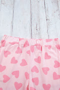 Sale Pink Valentine Heart Shape Print Long Sleeve Top Shorts Lounge Set