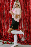 Pink Sequin Heart XOXO Patched Graphic Valentines T Shirt