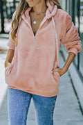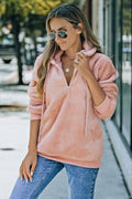 Sale Women's Color Block Quarter Zip T-Shirt - Casual Long Sleeve Top