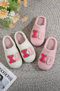 Pink XO XO Glitter Trim Letter Patched Plush House Slippers