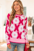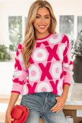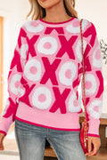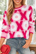 Pink XOXO Pattern Drop Shoulder Crewneck Valentines Sweater