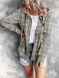 Sale Plaid Print Hooded Shirt, Casual Long Sleeve Drawstring Shirt