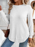 Sale Striped Botton Crew Neck T-Shirt, Elegant Long Sleeve T-Shirt