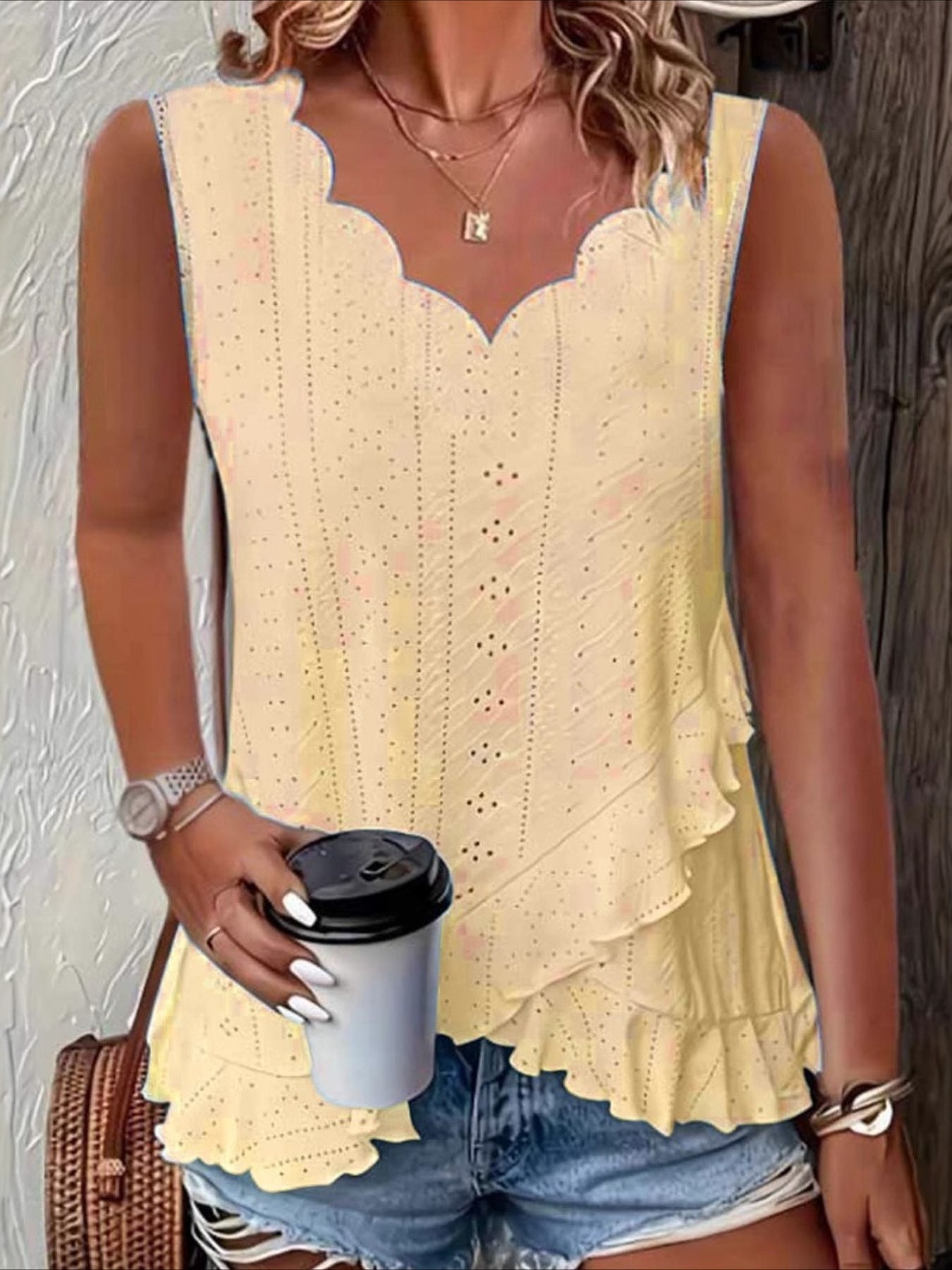 Sale Plain Daily Casual Sleeveless V Neck Regular Tank Top