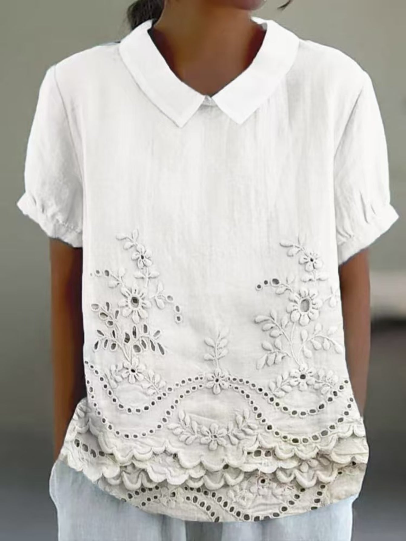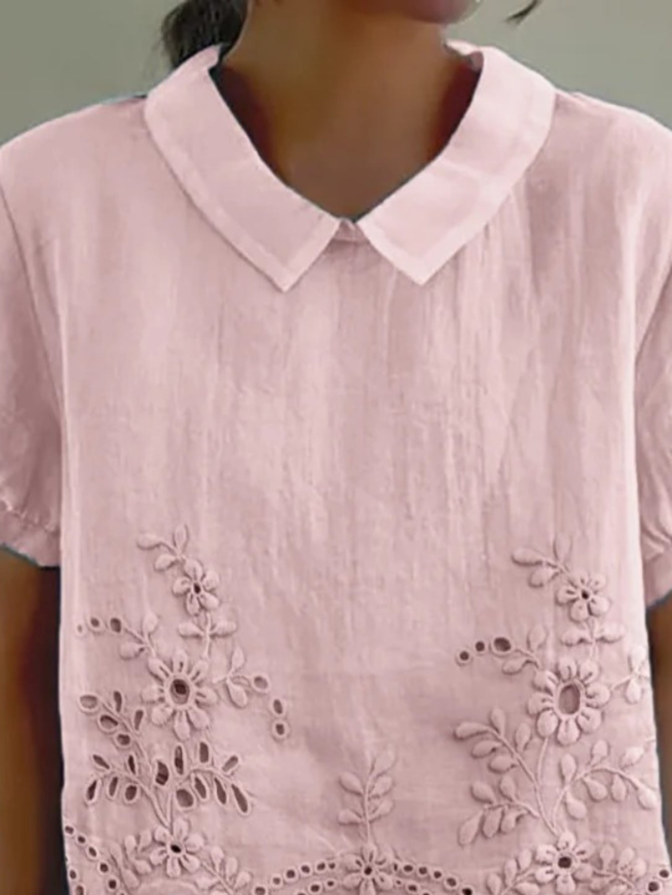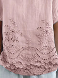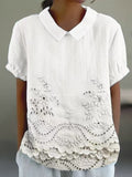 Plain Half Sleeve Blouse Summer Shawl Collar Daily Casual Top