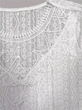 Plain Lace 3/4 Length Sleeve Casual Vintage Fashion Basic Round Neck Blouse