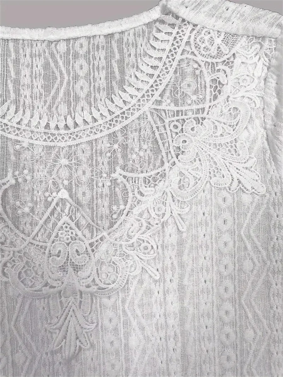 Sale Plain Lace 3/4 Length Sleeve Casual Vintage Fashion Basic Round Neck Blouse