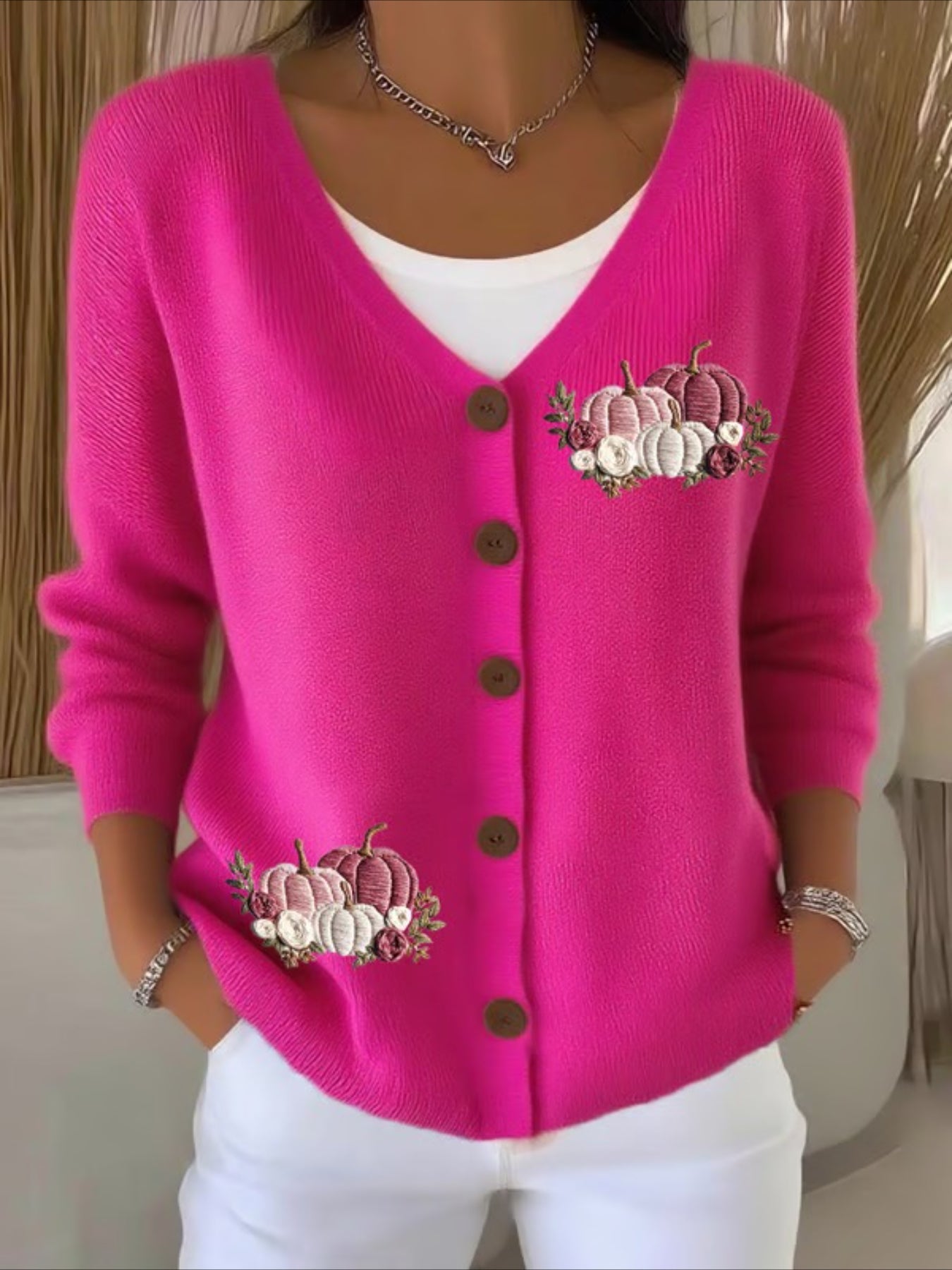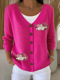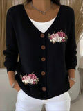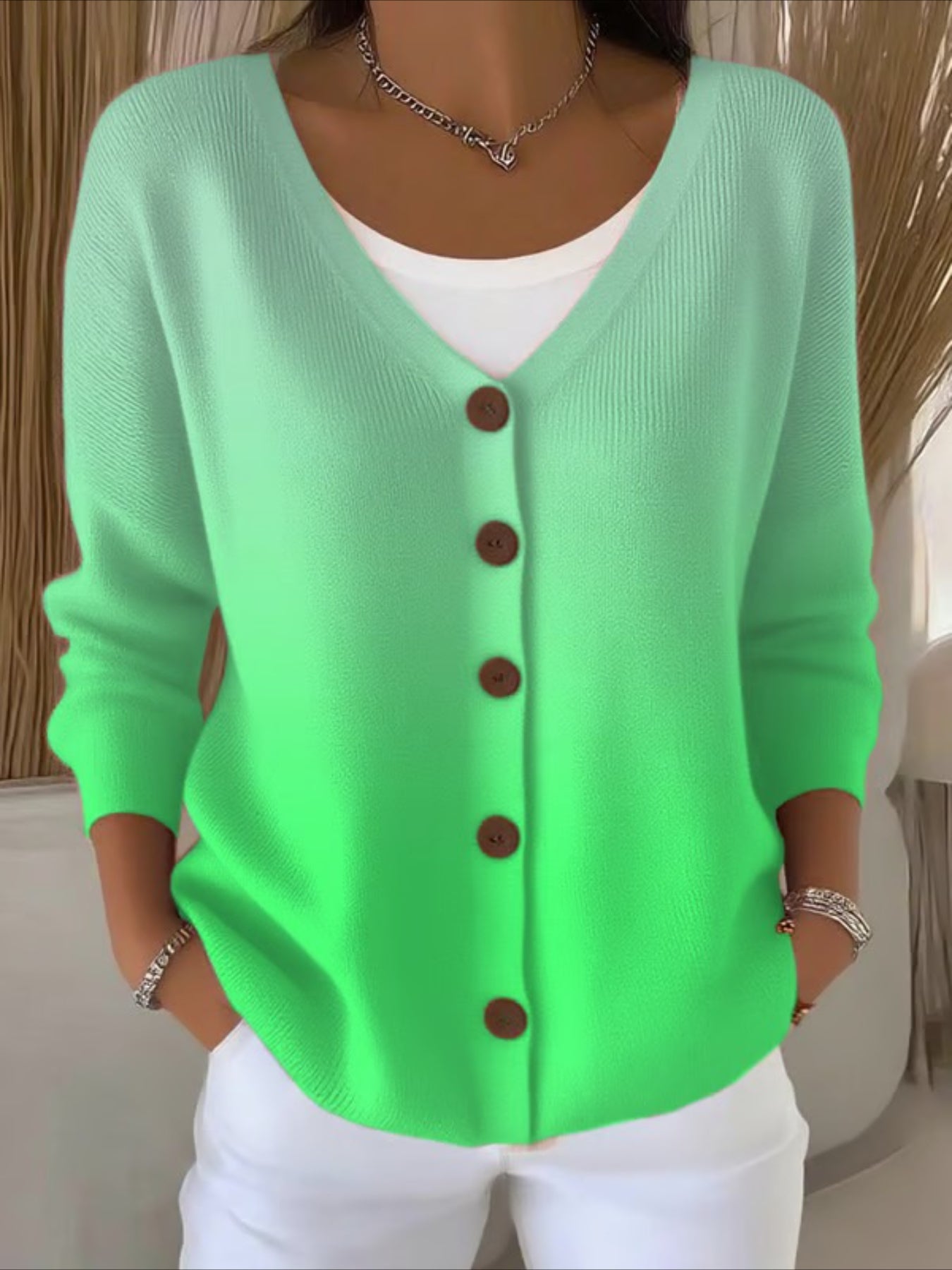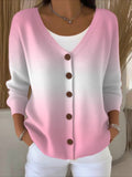Button Plain Long Sleeve Comfy Casual Cardigan