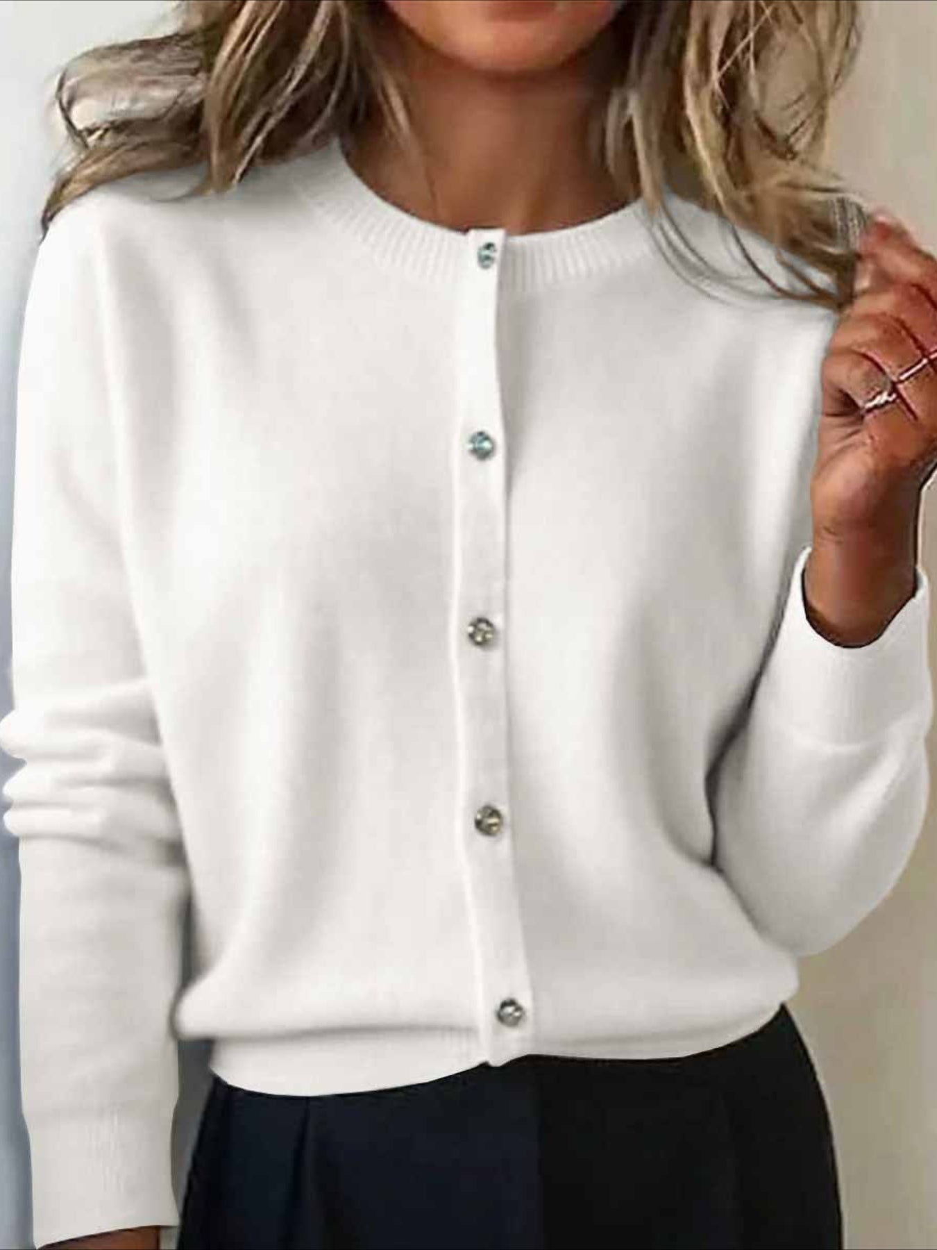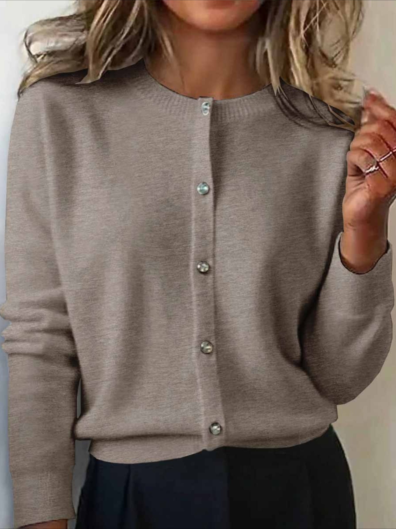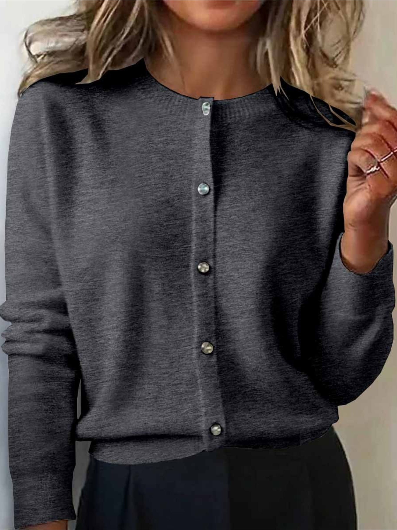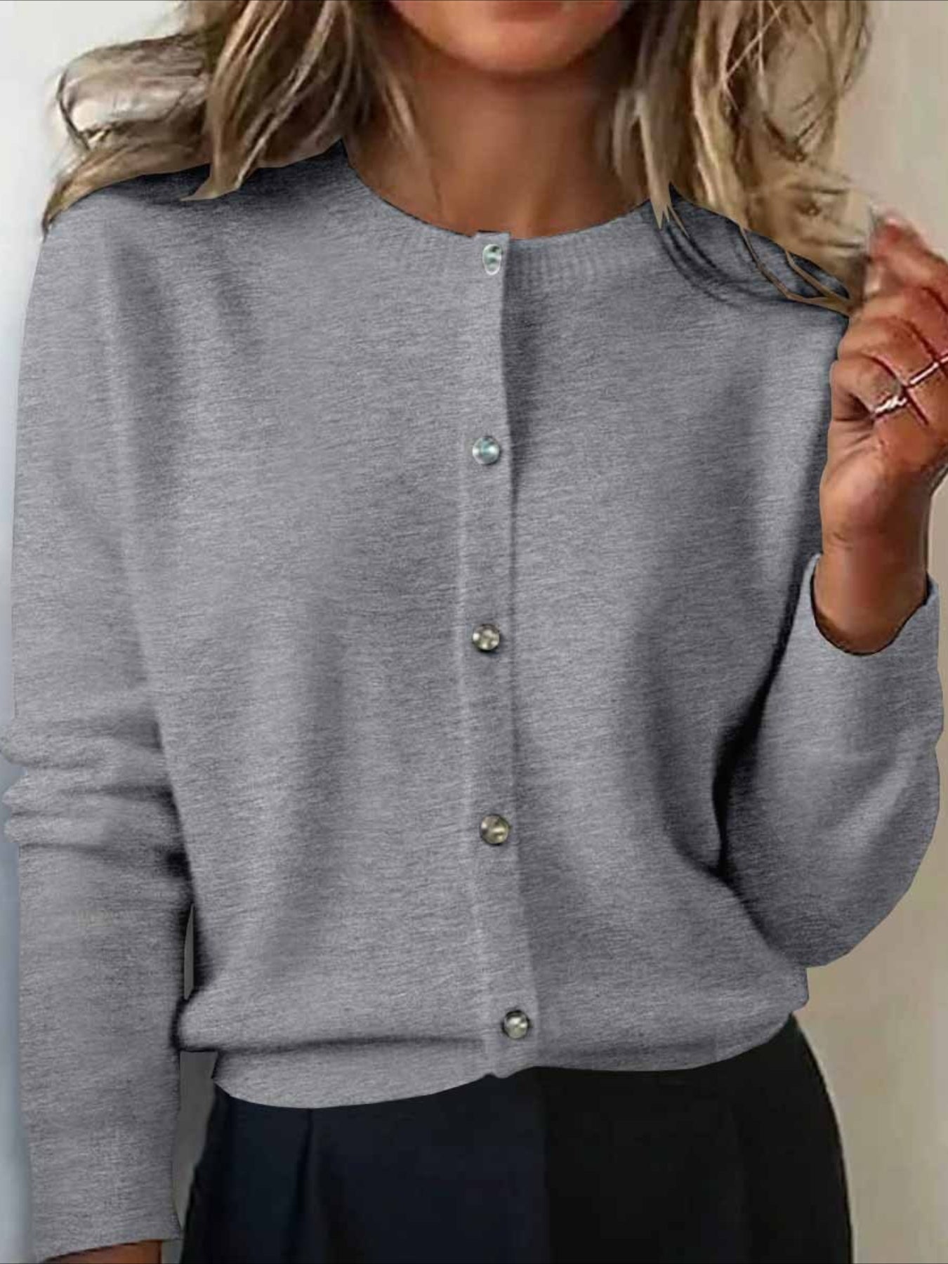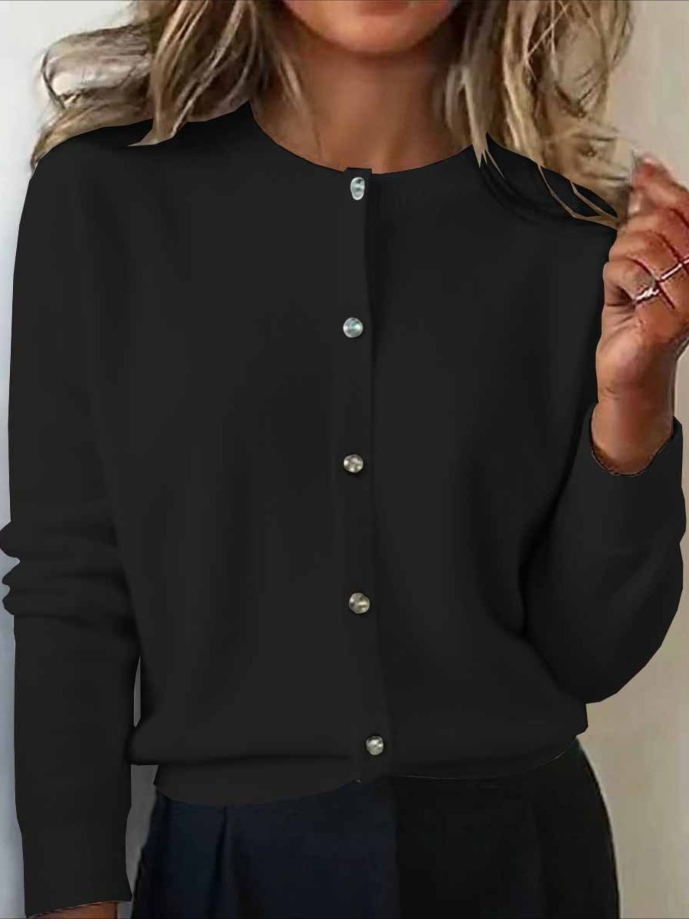 Button Plain Long Sleeve Comfy Casual Cardigan