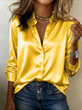 Plain Stand Collar Long Sleeve Shirt Split Joint Casual Daily Spring/Fall Top