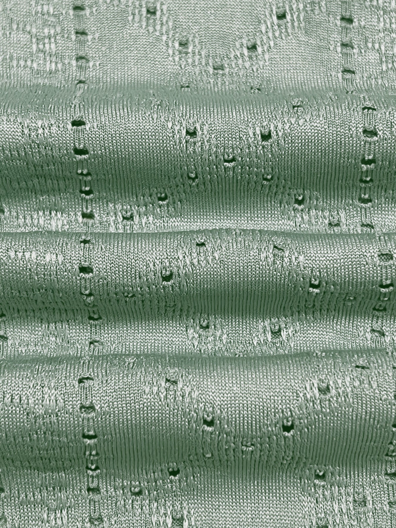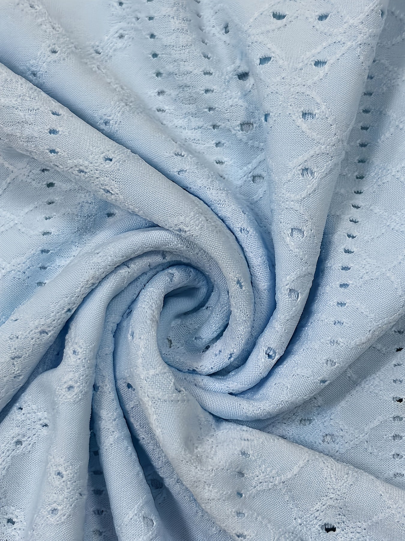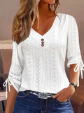Sale Basic Top, Women's Solid Eyelet Embroidery Ruched Tie Long Sleeve Button Decor V Neck Slight Stretch Top