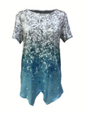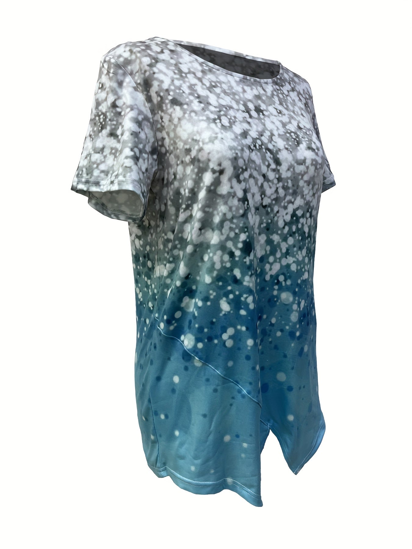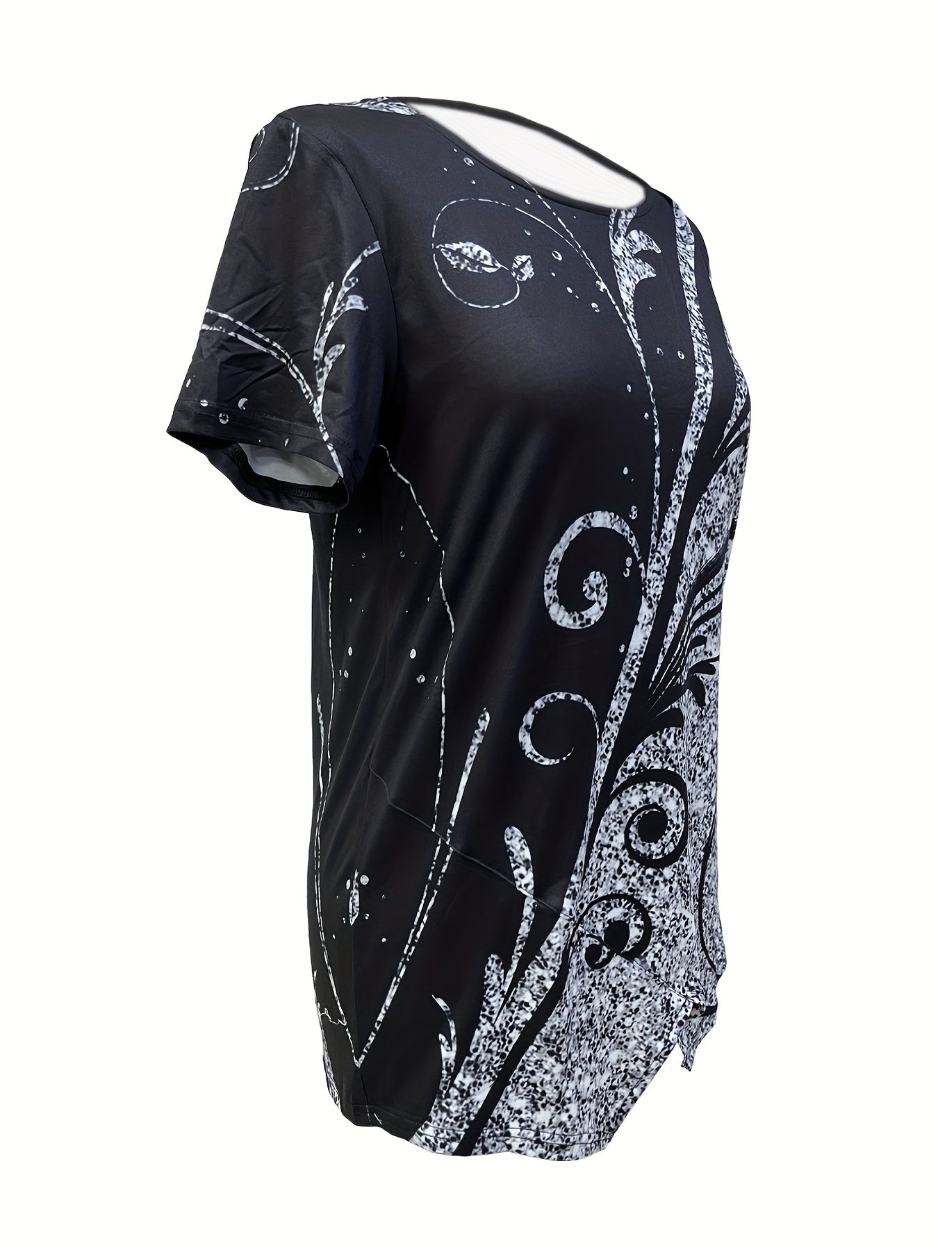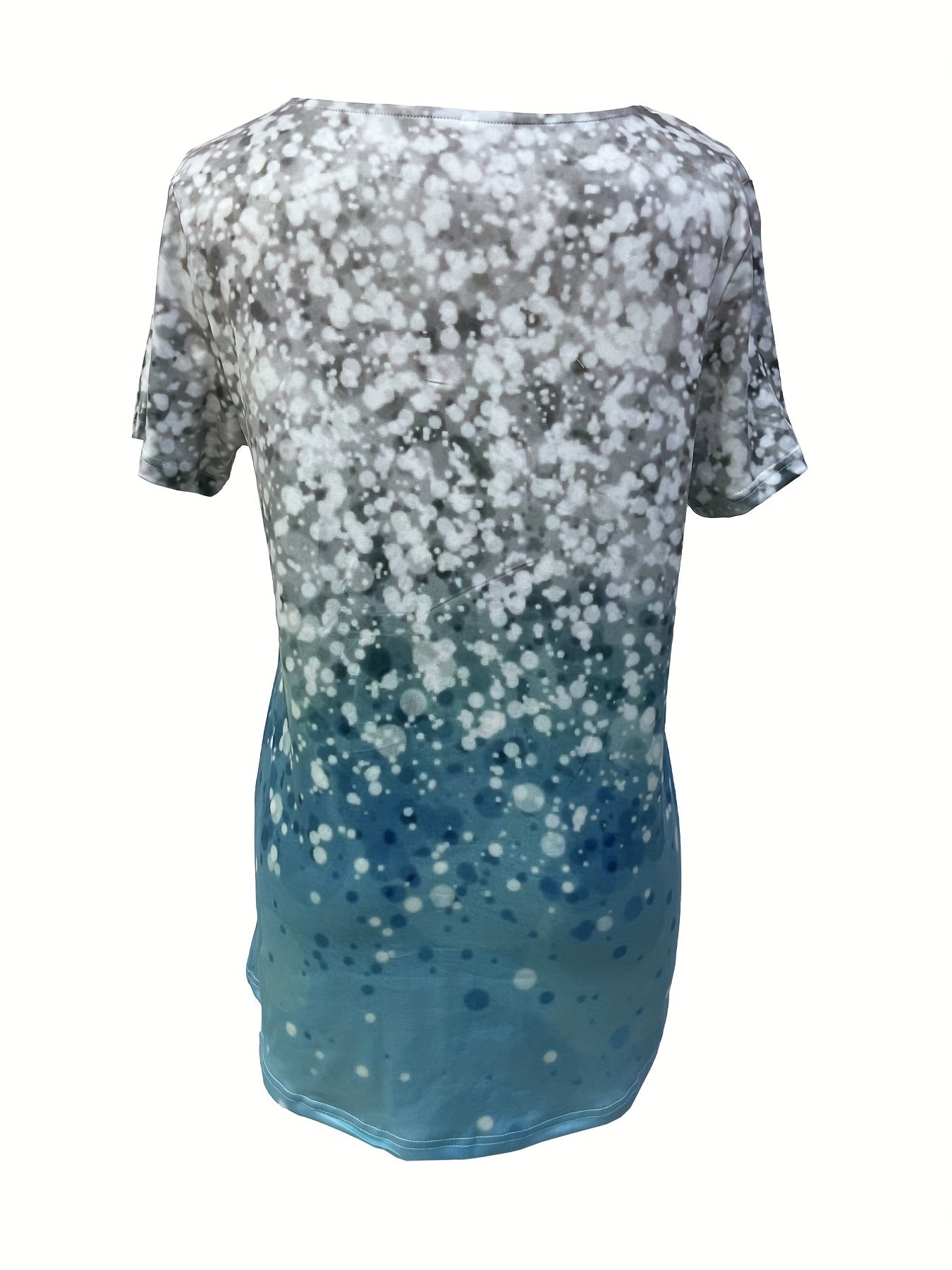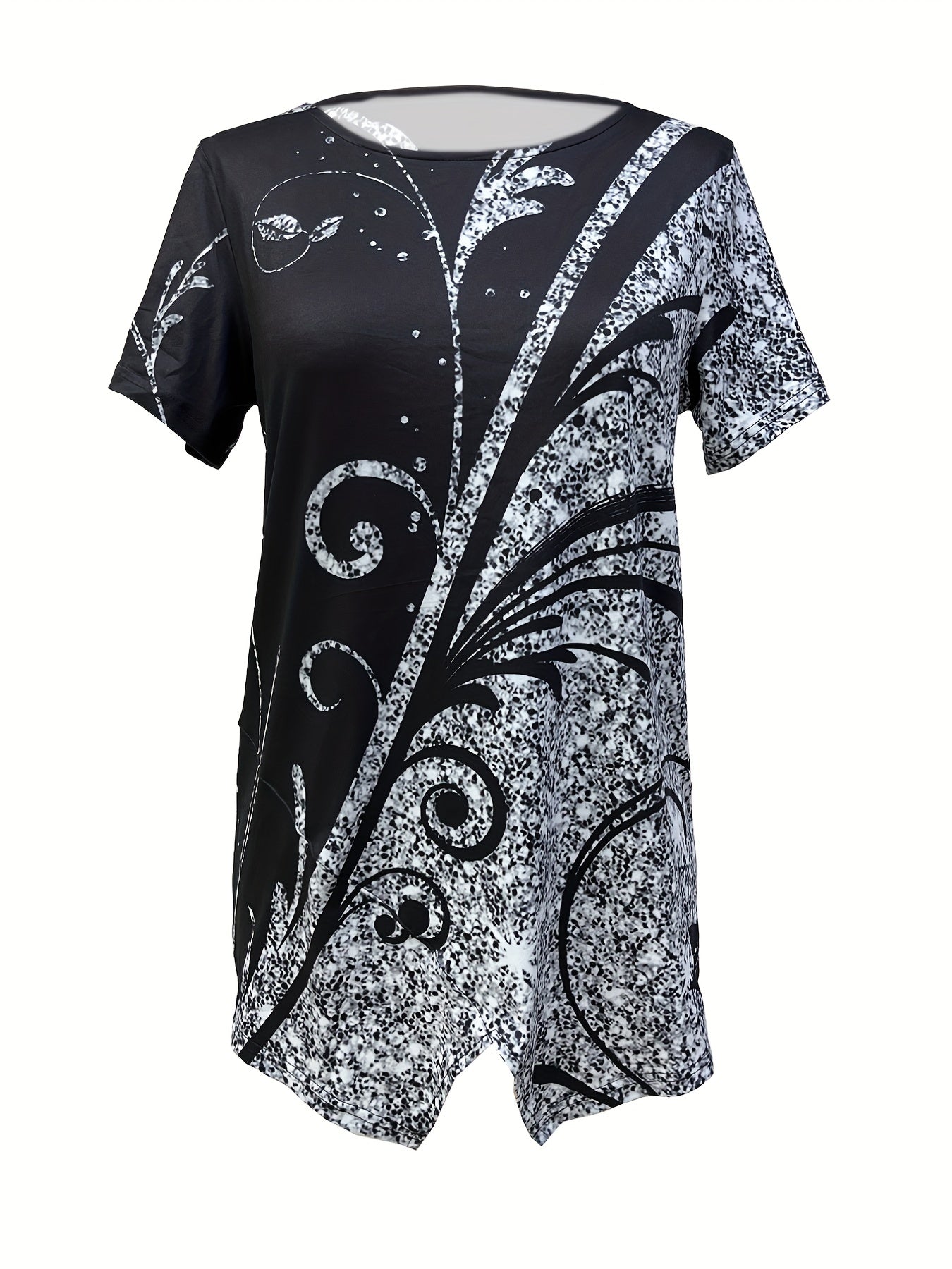 Casual T-shirt, Women's Allover Print Short Sleeve Round Neck Medium Stretch Tee