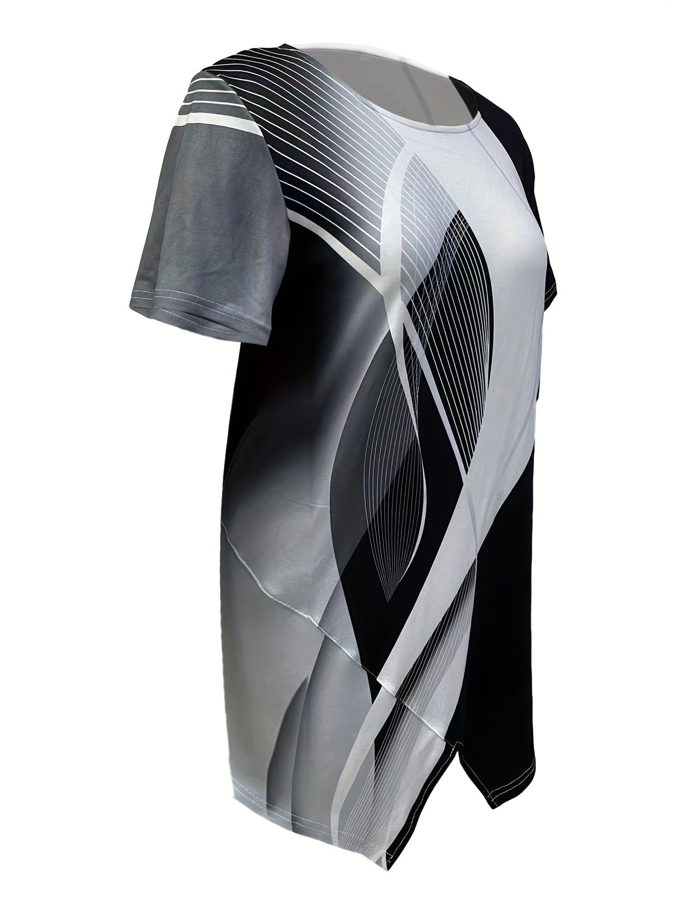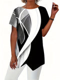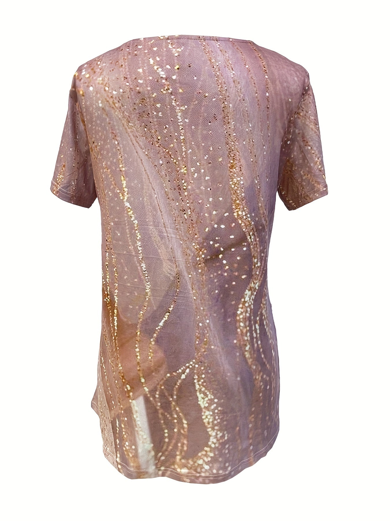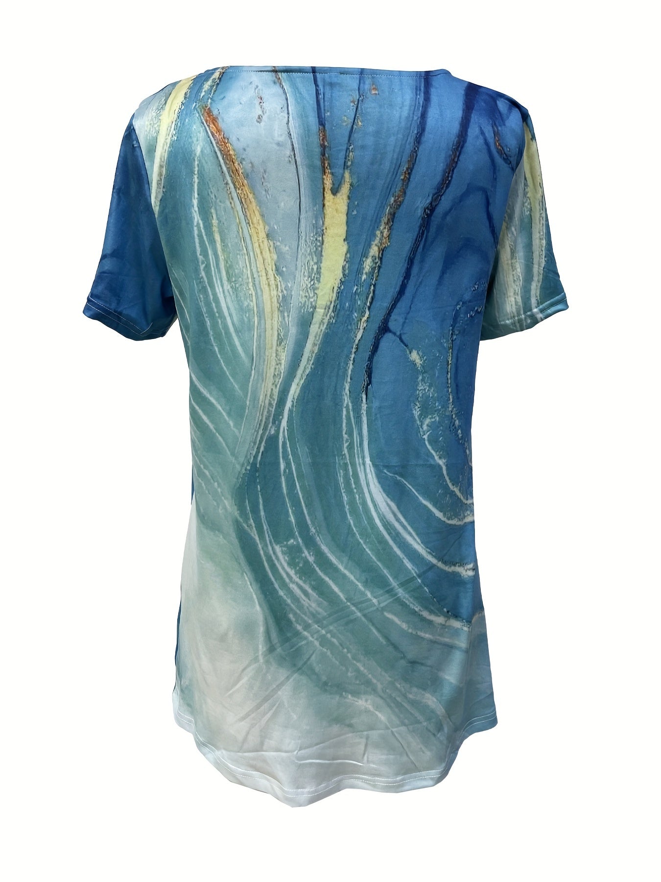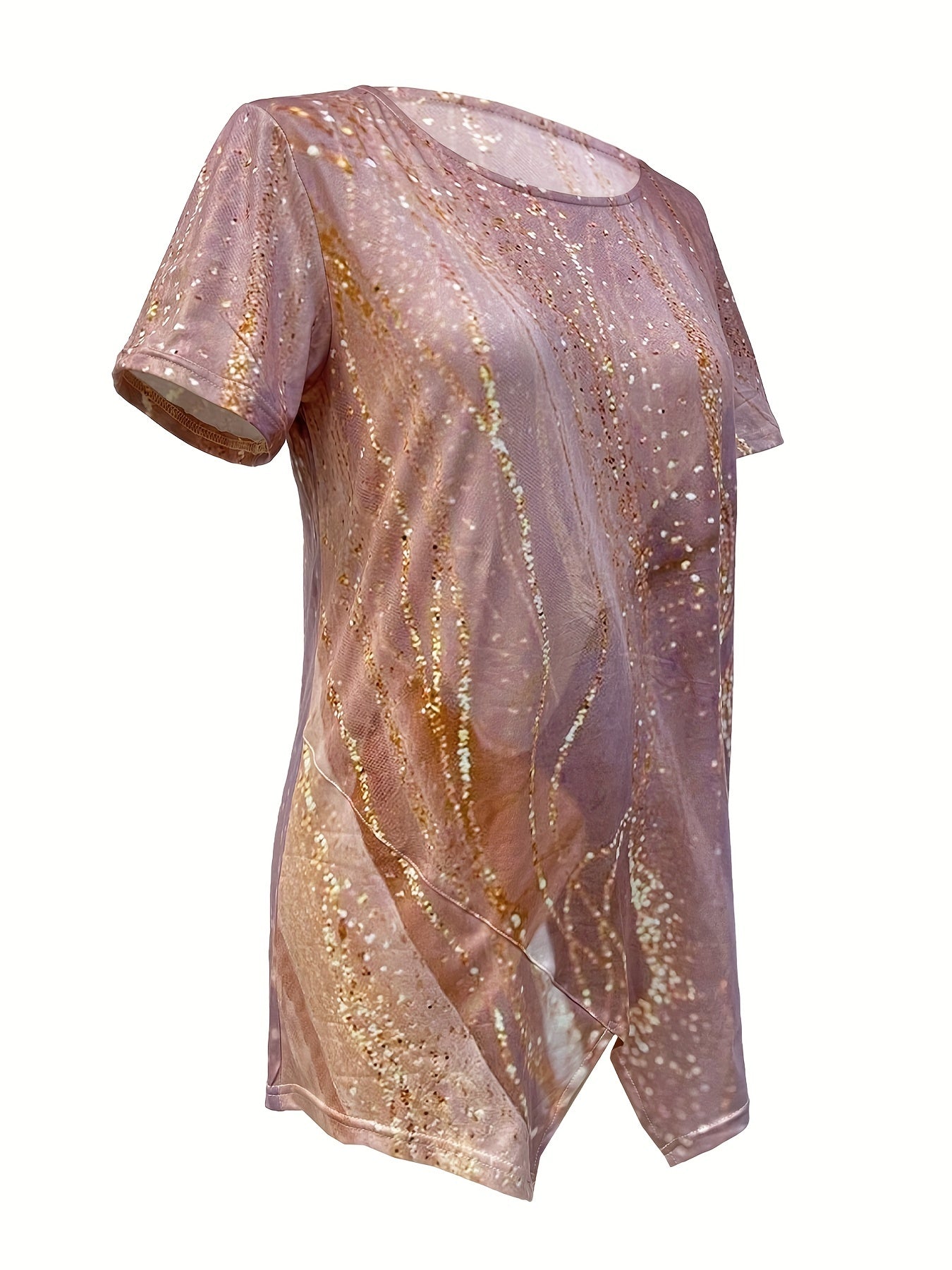 Casual T-shirt, Women's Allover Print Short Sleeve Round Neck Medium Stretch Tee