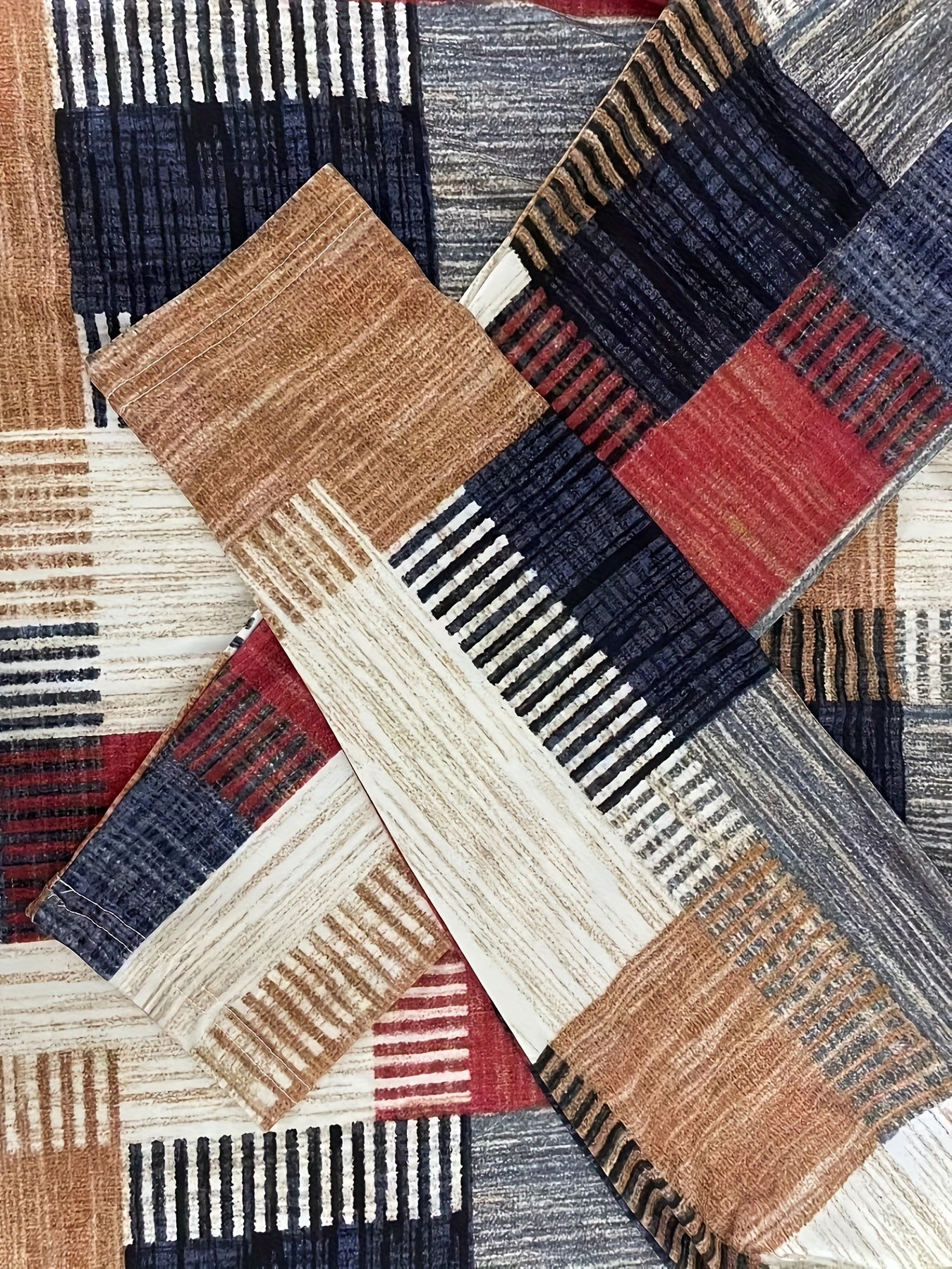 Sale Casual T-shirt, Patchwork Print Long Sleeve V Neck Medium Stretch T-shirt