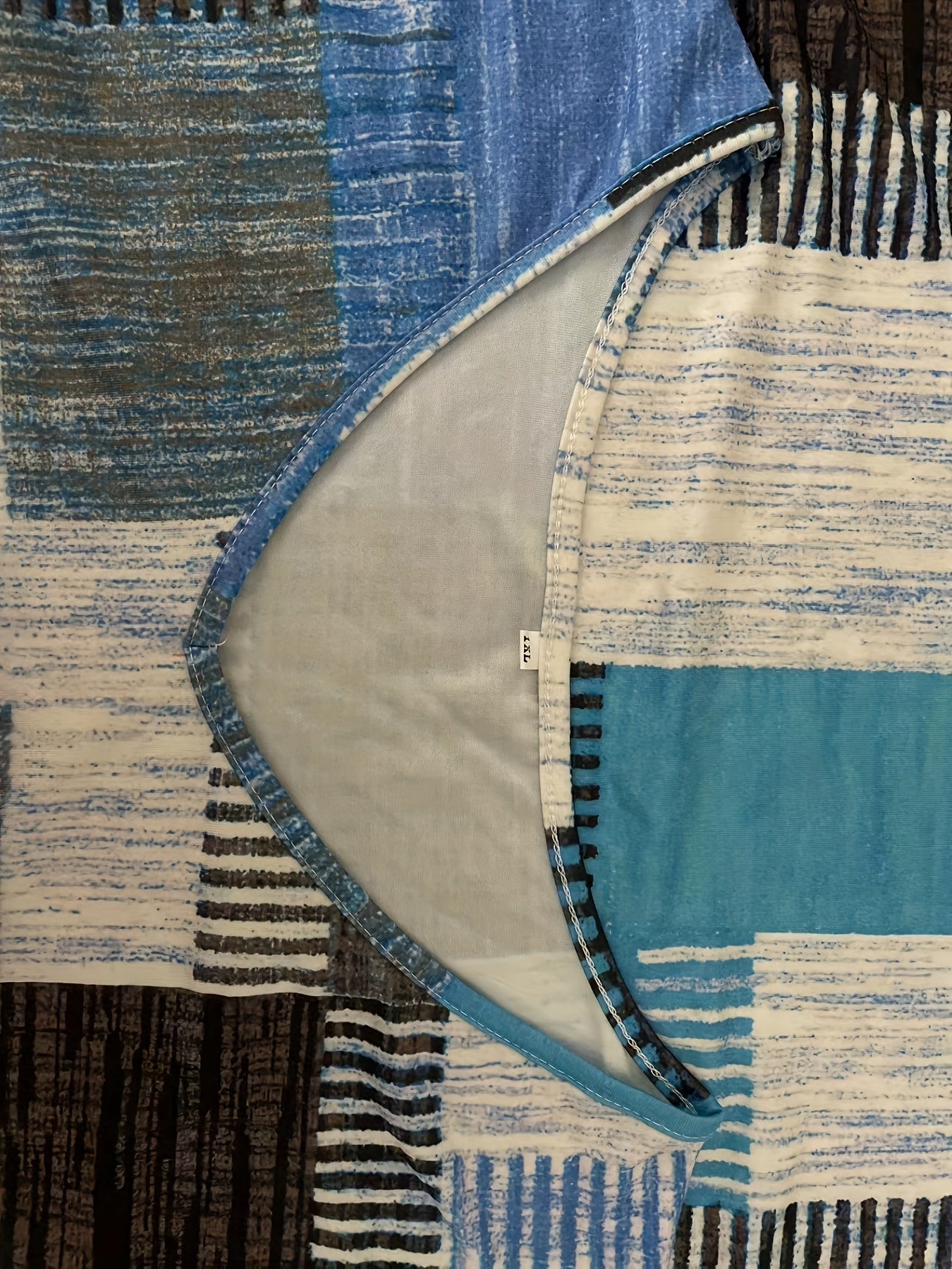 Casual T-shirt, Patchwork Print Long Sleeve V Neck Medium Stretch T-shirt
