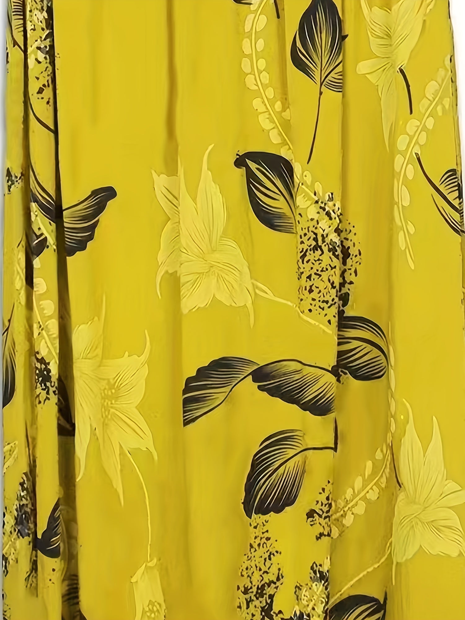 Sale Three-quarter Illusion Sleeve Floral Dress, Casual Keyhole Crew Neck Loose Dress