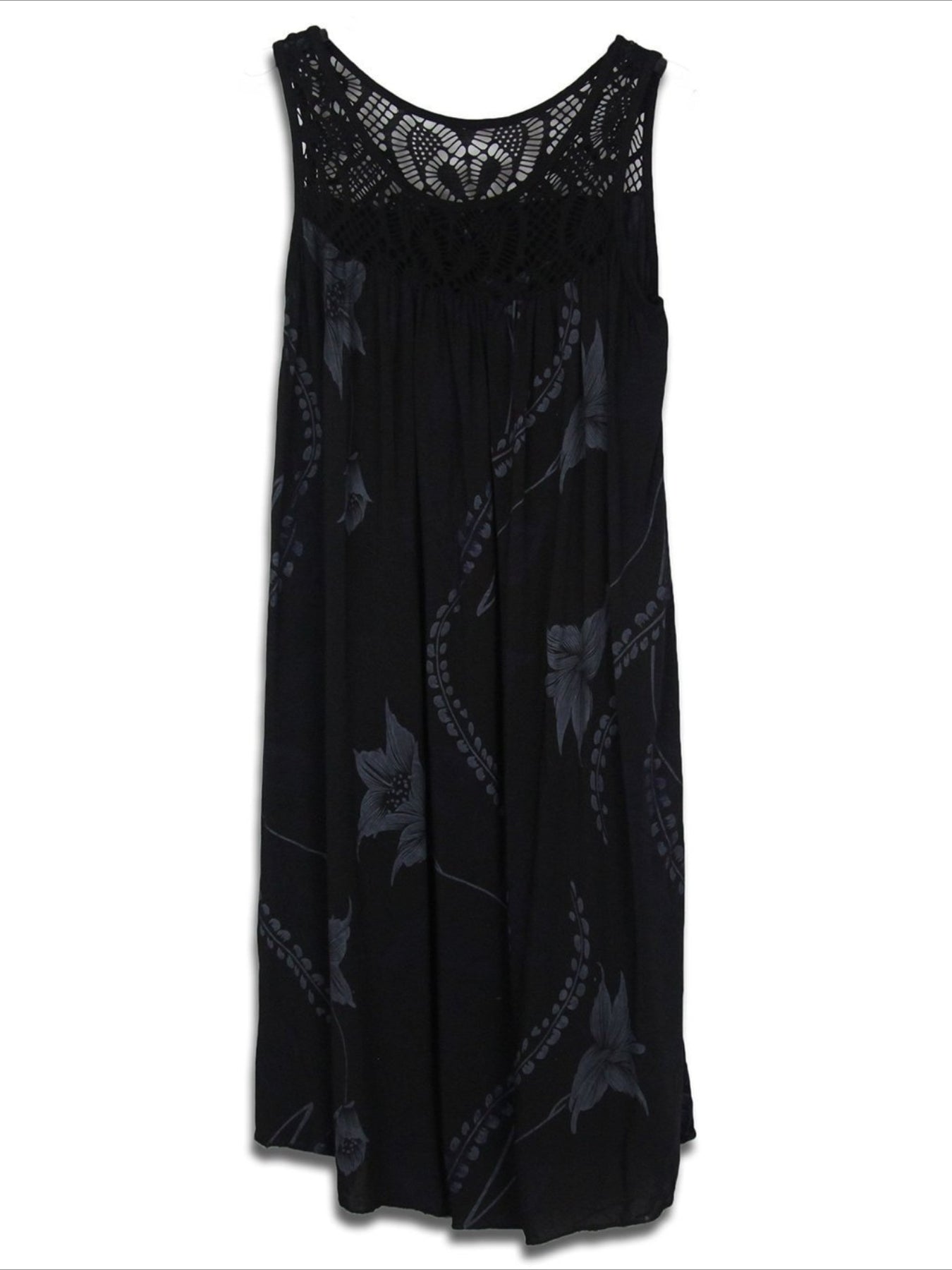 Floral Print Eyelet Embroidered Round Neck Mini Tank Dress