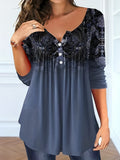 Sale Casual Contrast Lace Round Neck Long Sleeve T-Shirt