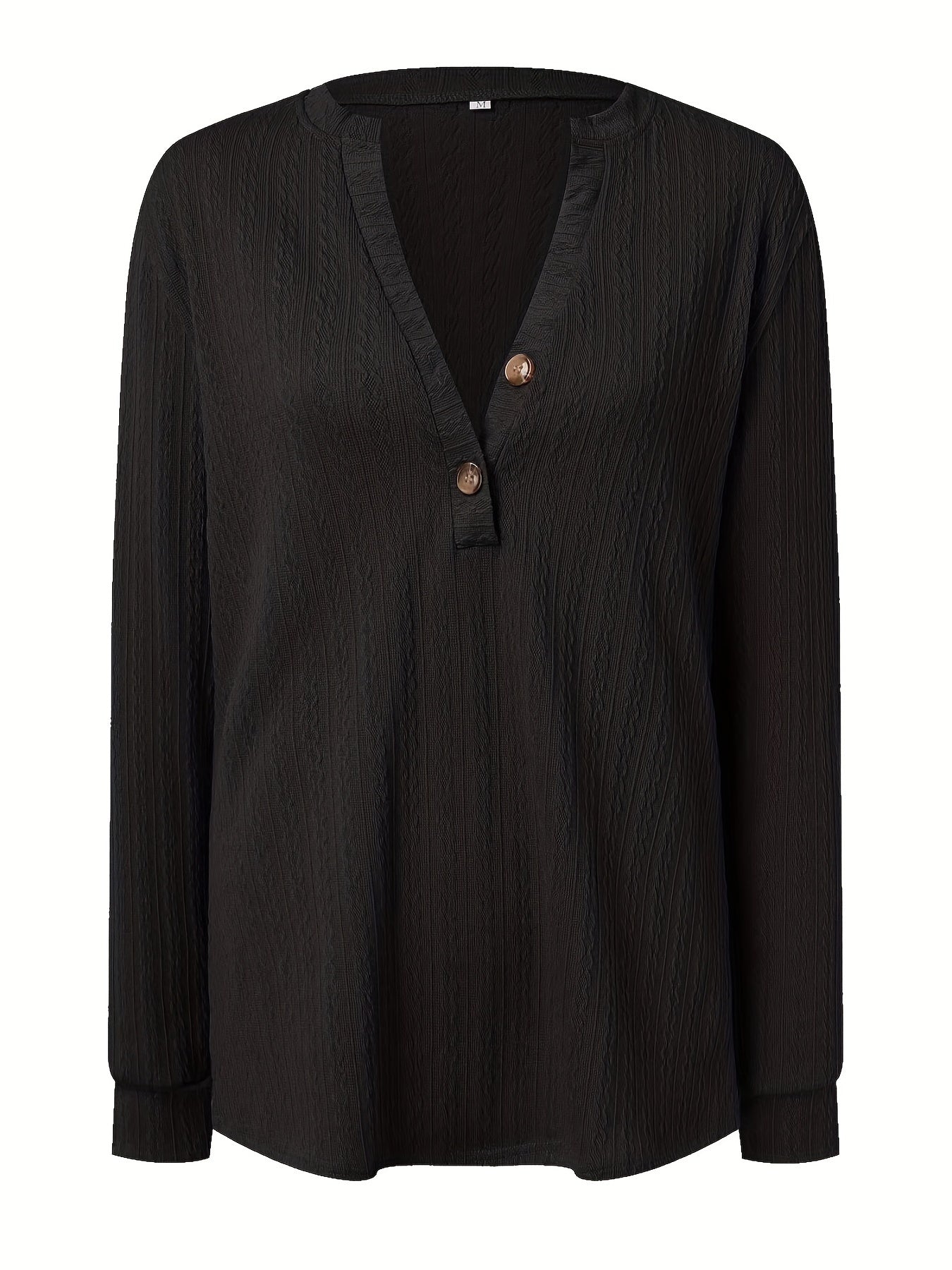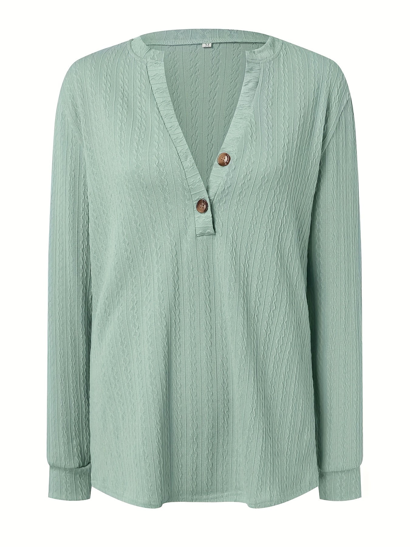 Sale Plus Size Casual Top, Women's Plus Solid Cable Long Sleeve Button Decor V Neck Slight Stretch Top