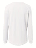 Sale Striped Botton Crew Neck T-Shirt, Elegant Long Sleeve T-Shirt