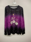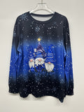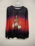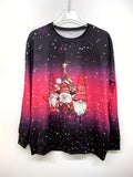 Sale Christmas Top, Women's Christmas Dwarf & Slogan Print Ombre Long Sleeve Round Neck Slight Stretch Top