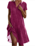 Sale V Neck Short Sleeves Print Casual Midi Dress