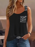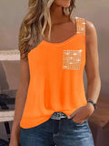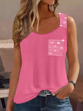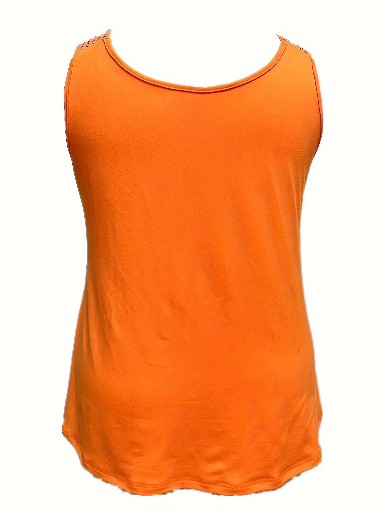 Sale Rhinestone Solid Tank Top, Casual Crew Neck Sleeveless Top