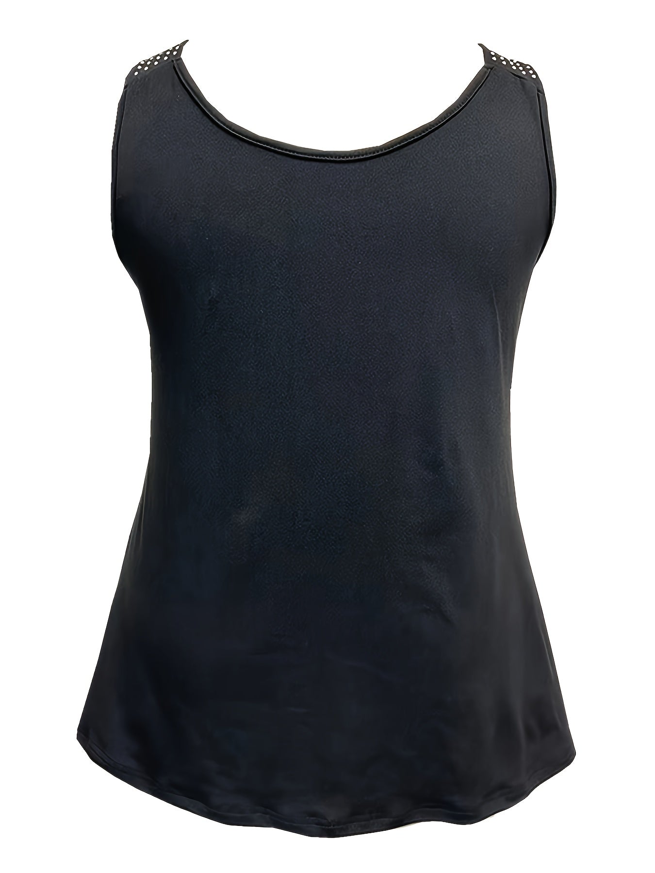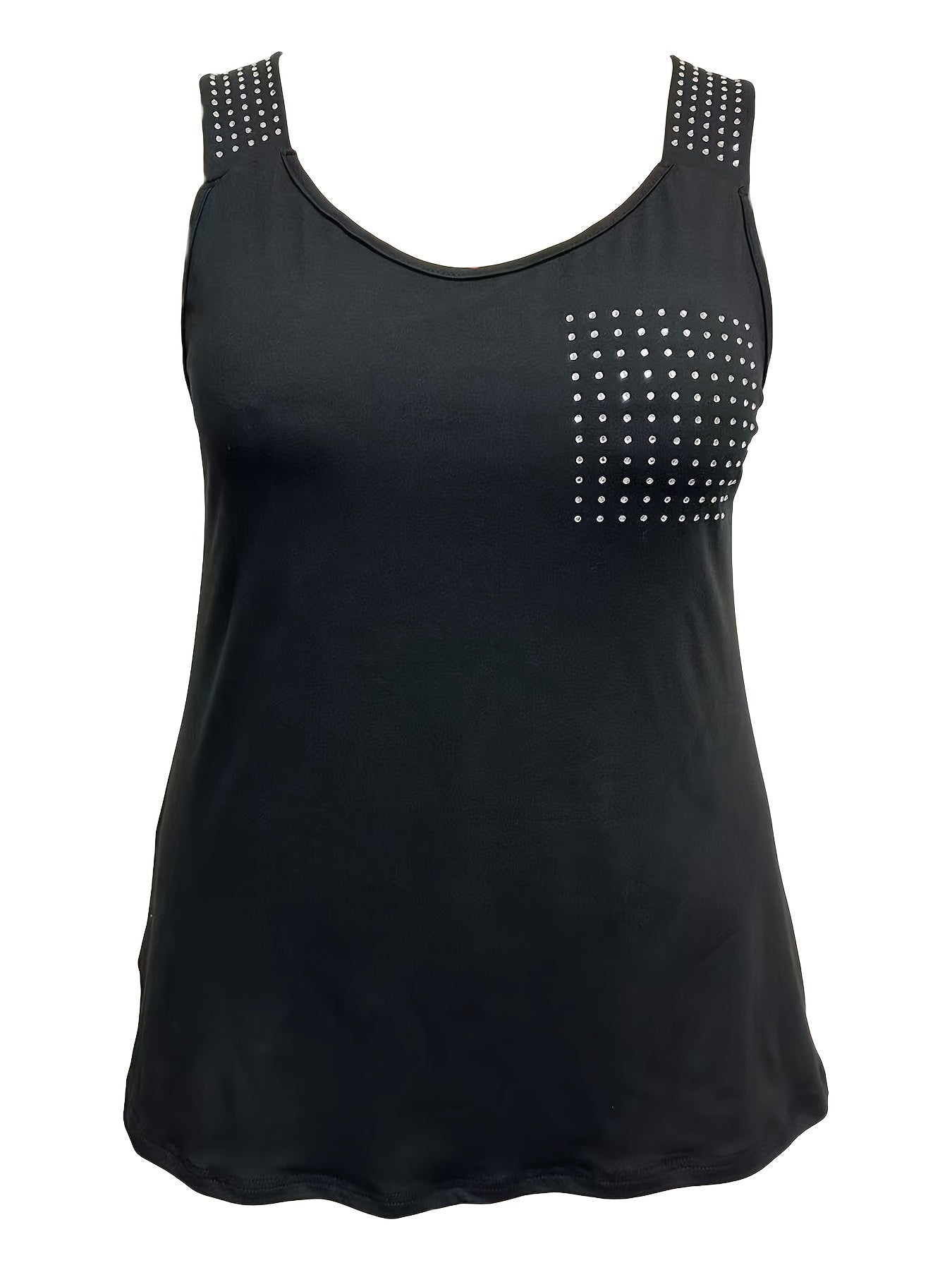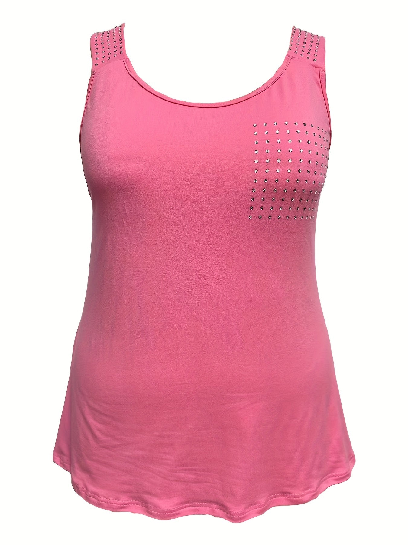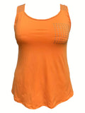 Rhinestone Solid Tank Top, Casual Crew Neck Sleeveless Top