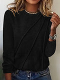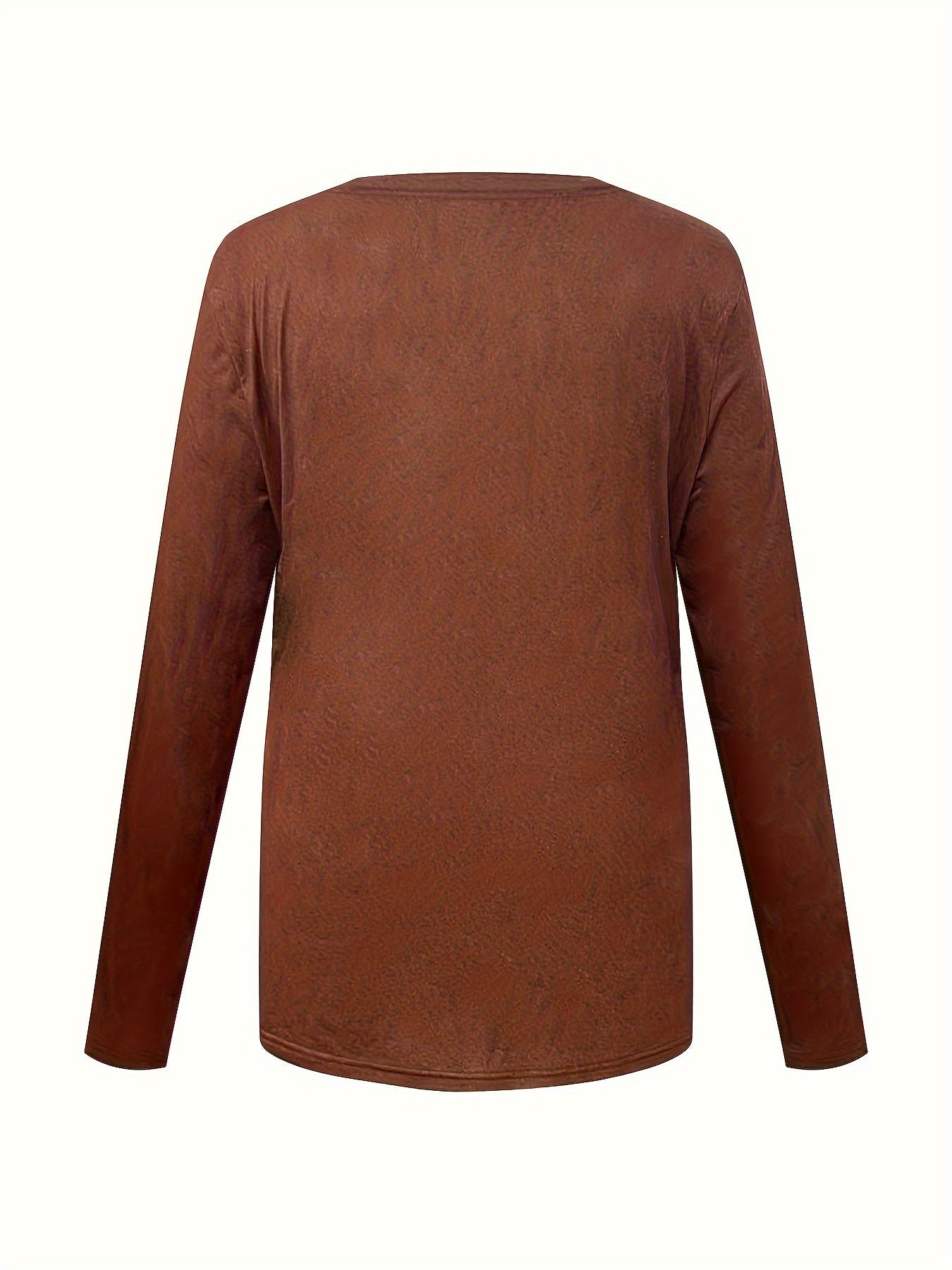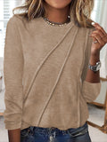 Solid Color T-Shirt, Casual Crew Neck Long Sleeve Top