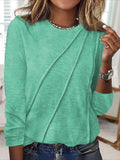 Sale Solid Color T-Shirt, Casual Crew Neck Long Sleeve Top
