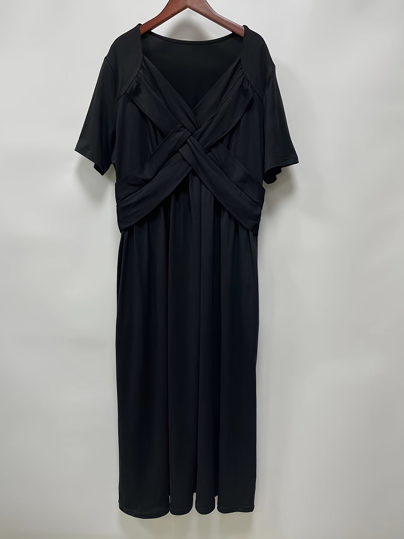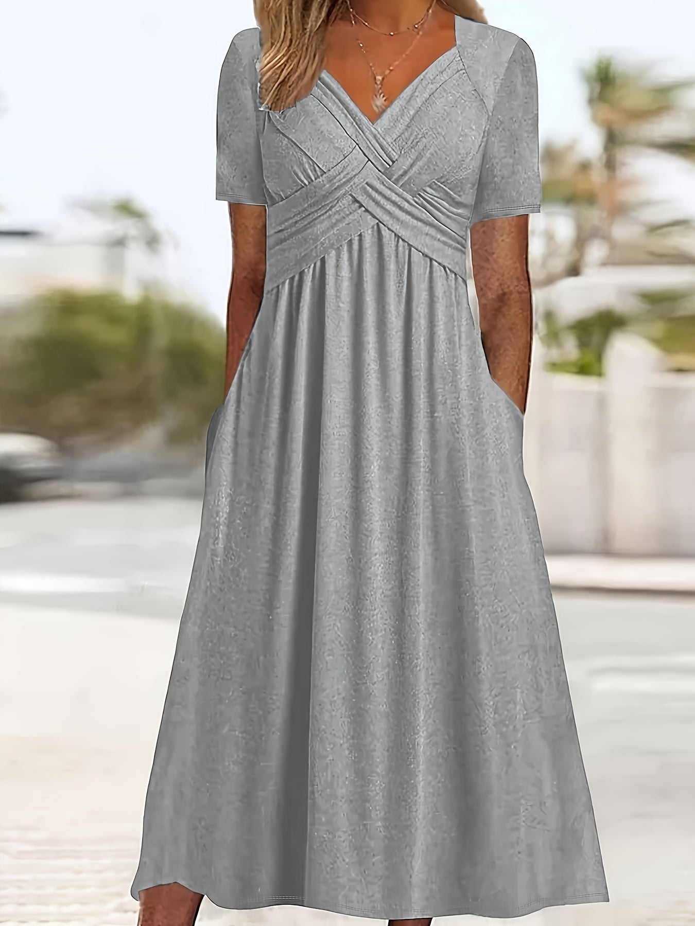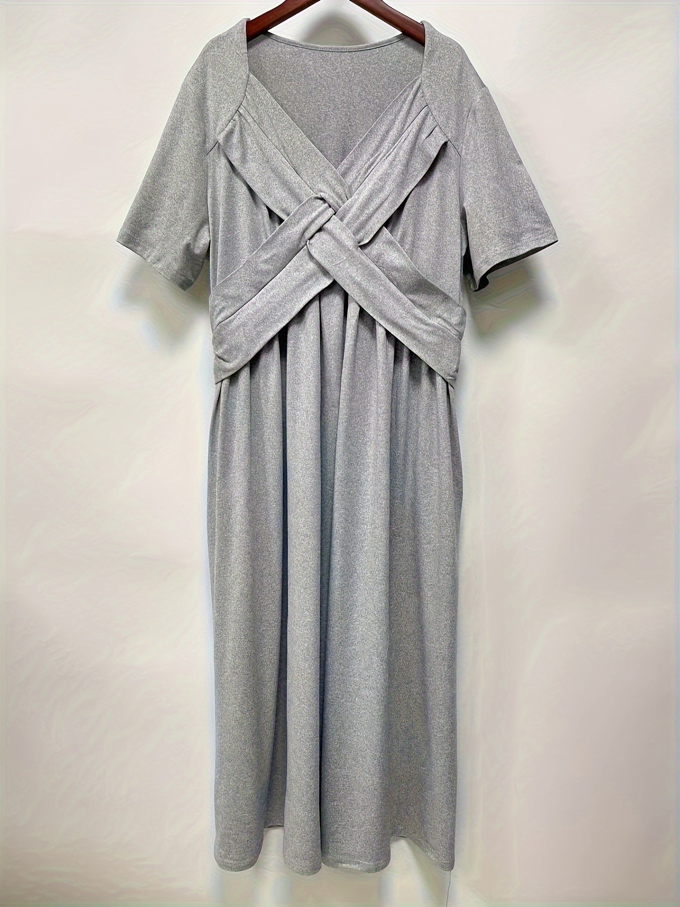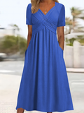Sale Solid V Neck Dress, Casual Criss Cross Short Sleeve Dress