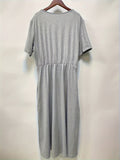Sale Long Sleeve Vintage Solid Crew Neck Maxi Dress
