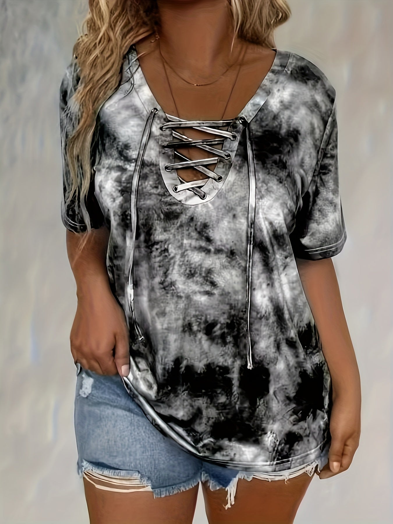 Sale Print Front Button Drawstring Oversized Top