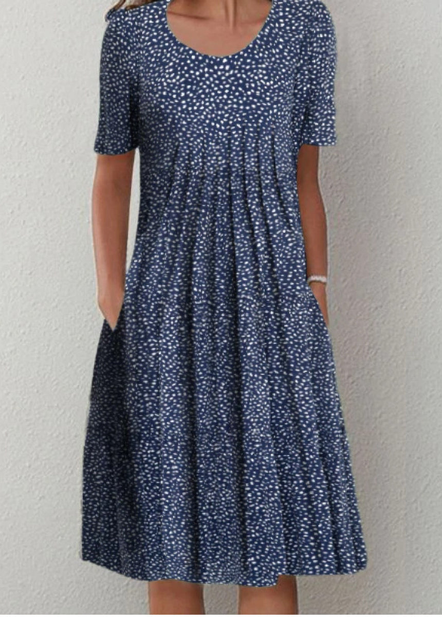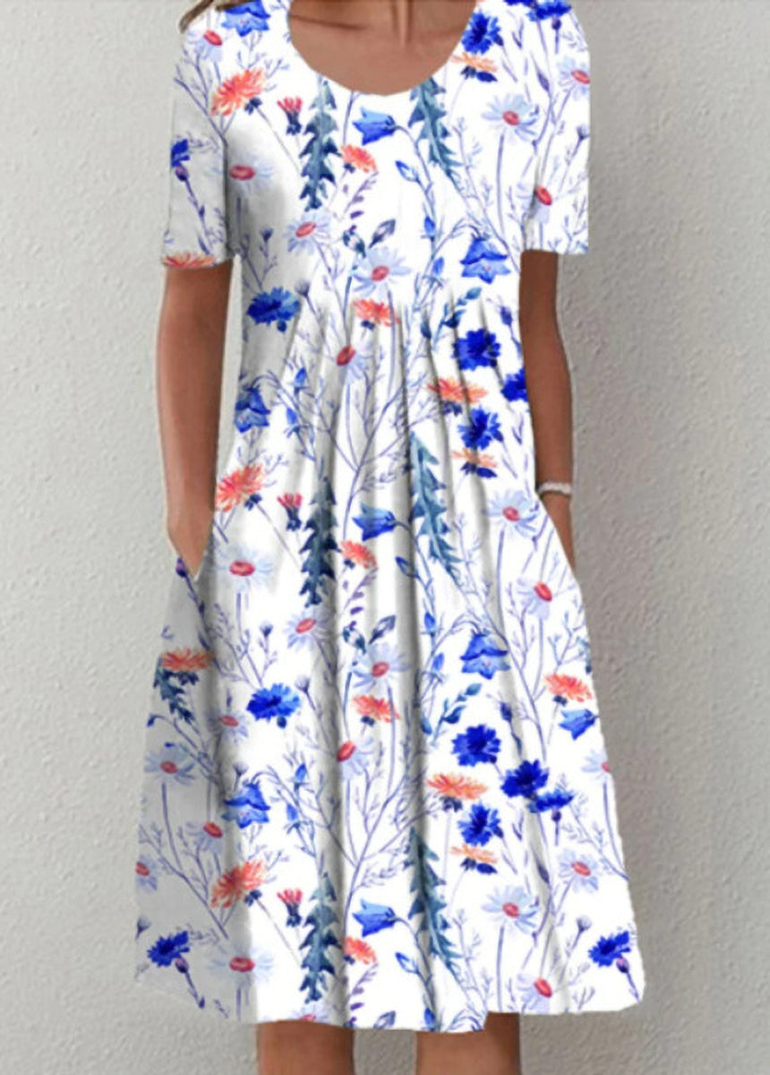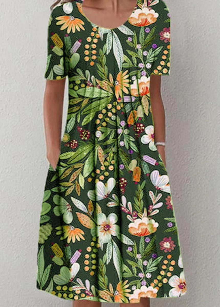 Printed Round Neck Short Sleeve Dress