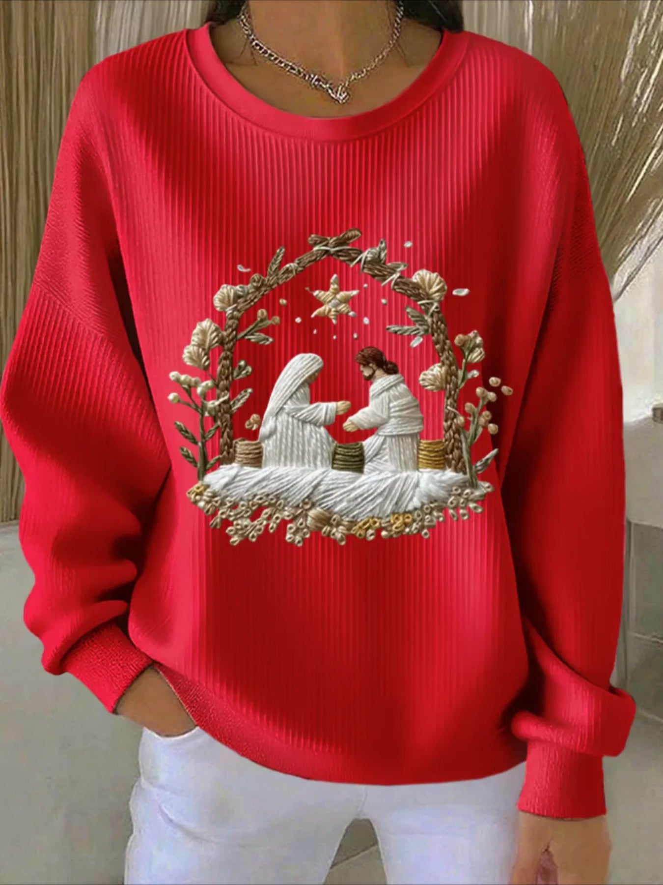 Christmas Printed Crew Neck Floral Long Sleeve Comfy Casual Sweater Hoodie