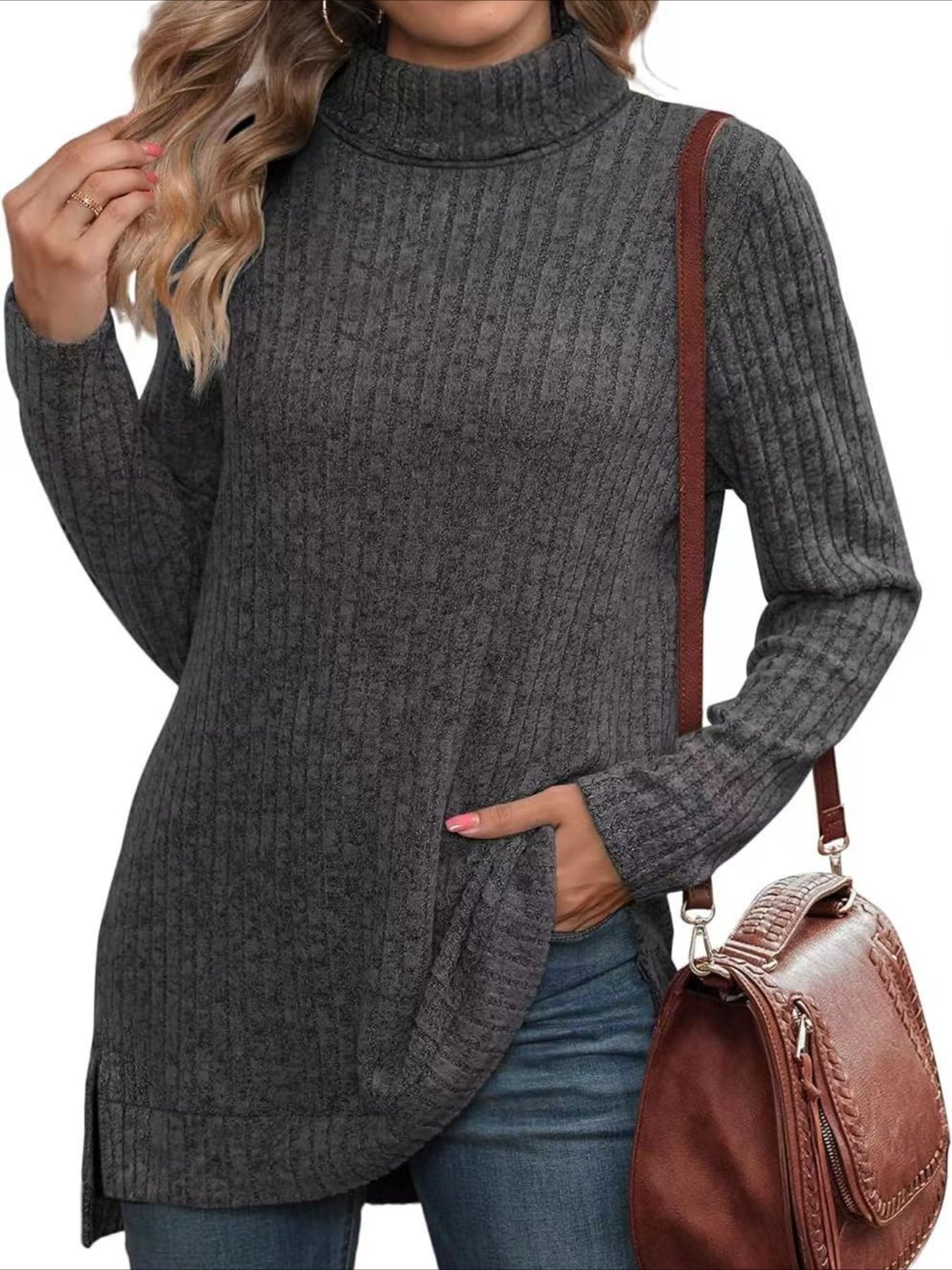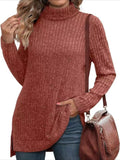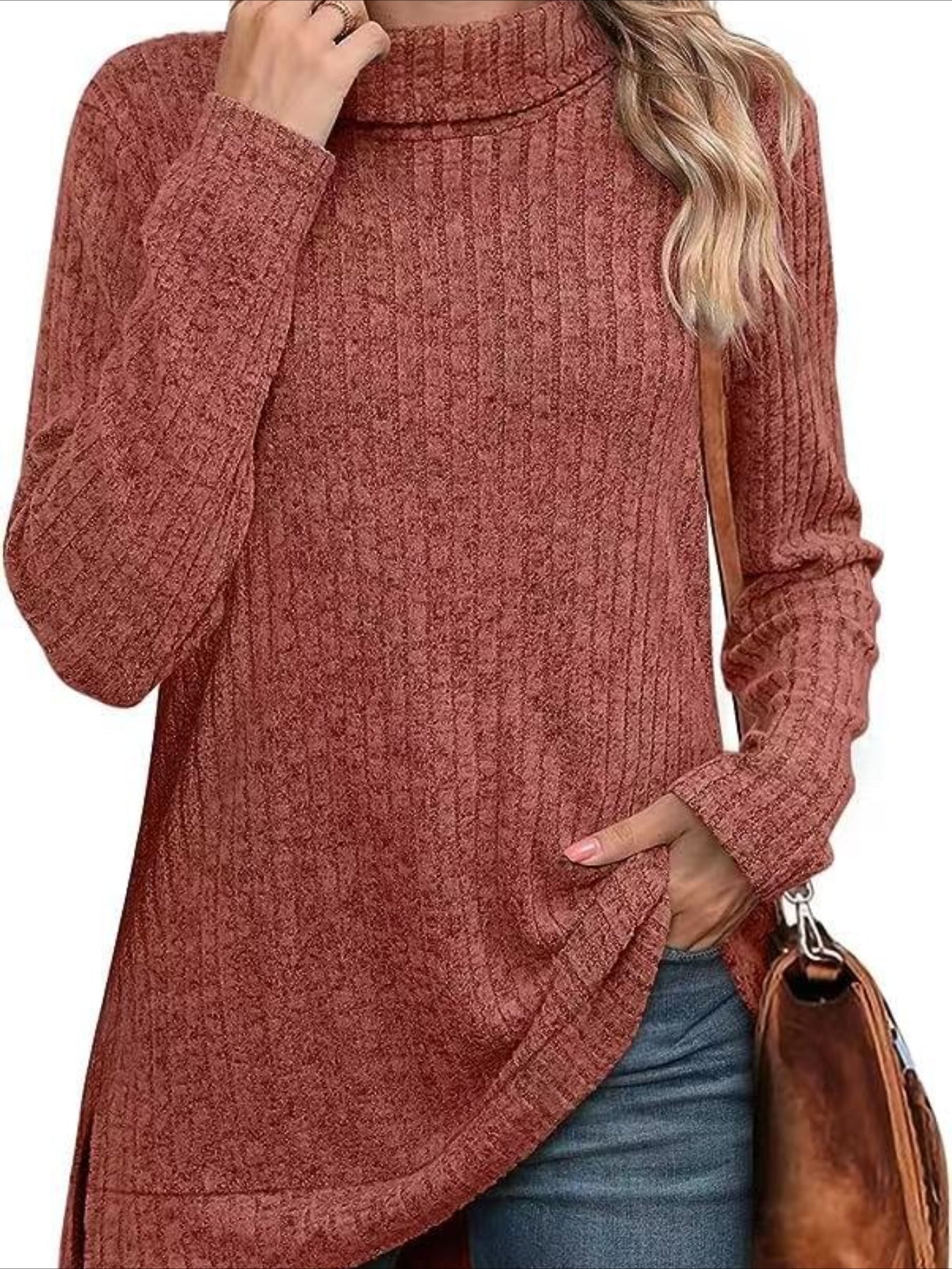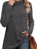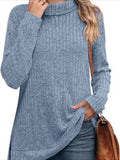 Cowl Neck Long Sleeve Plain Regular Regular Fit Shirt