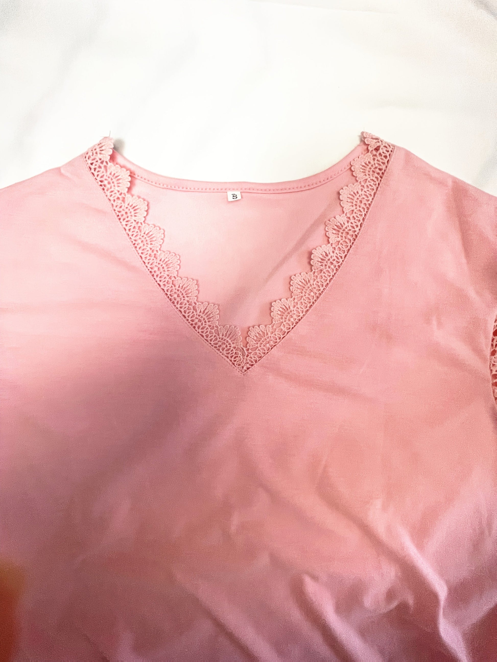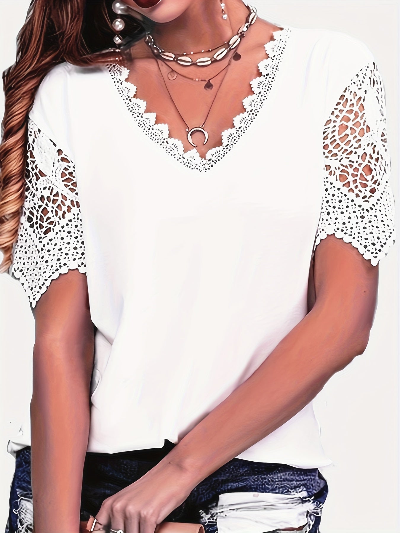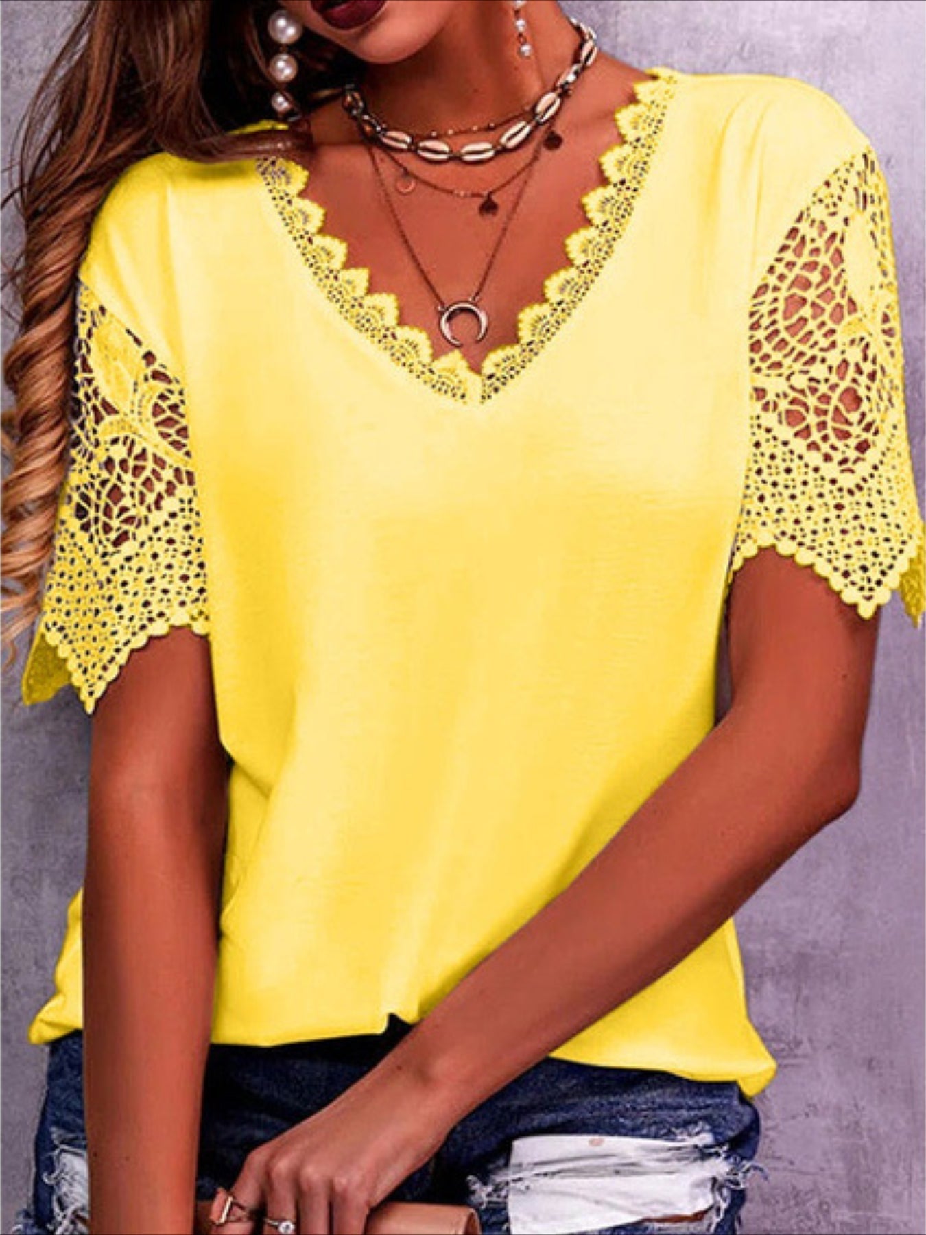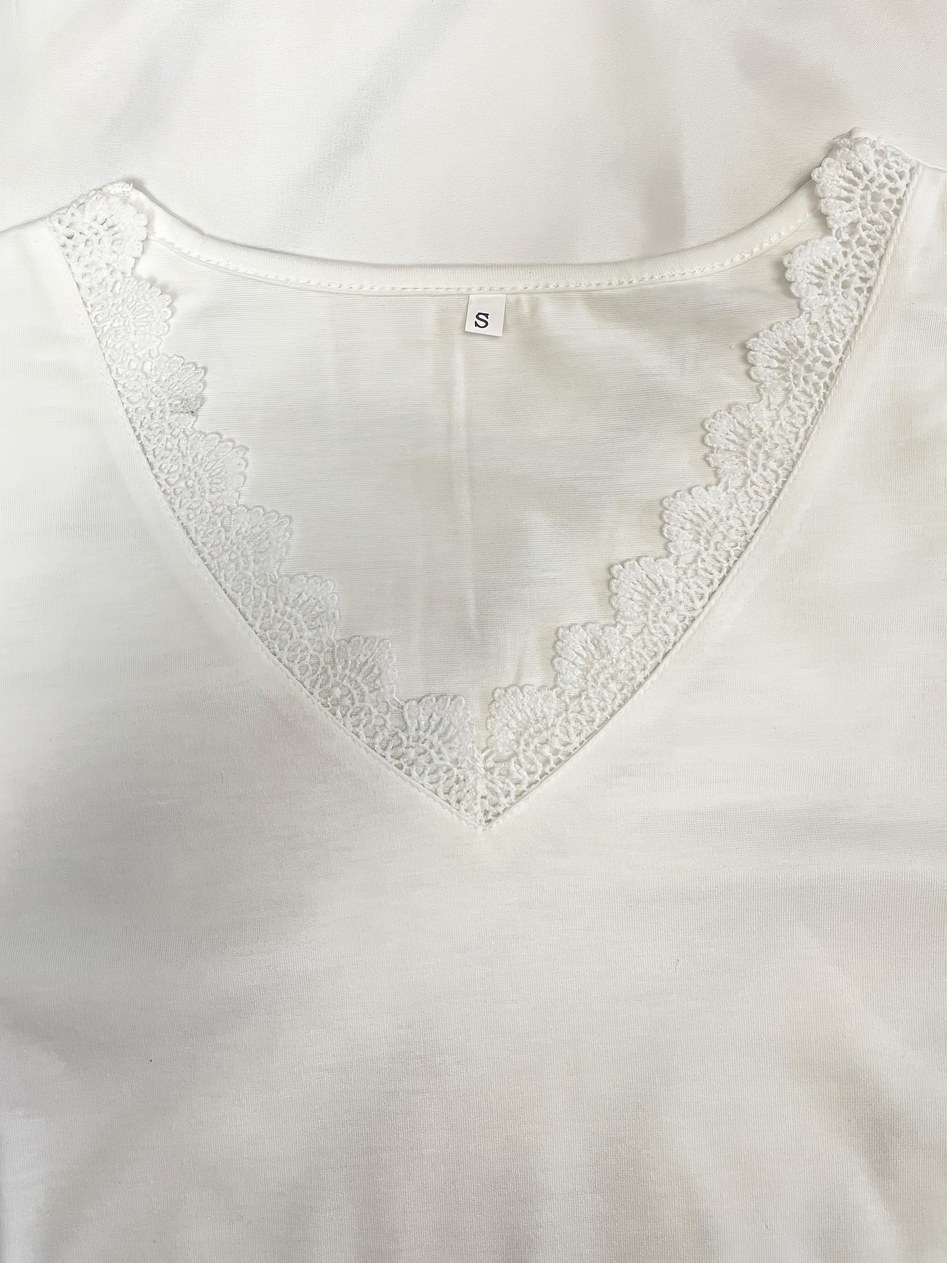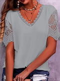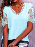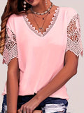 Sale Pure Color Lace Patchwork Short Sleeve T-shirt