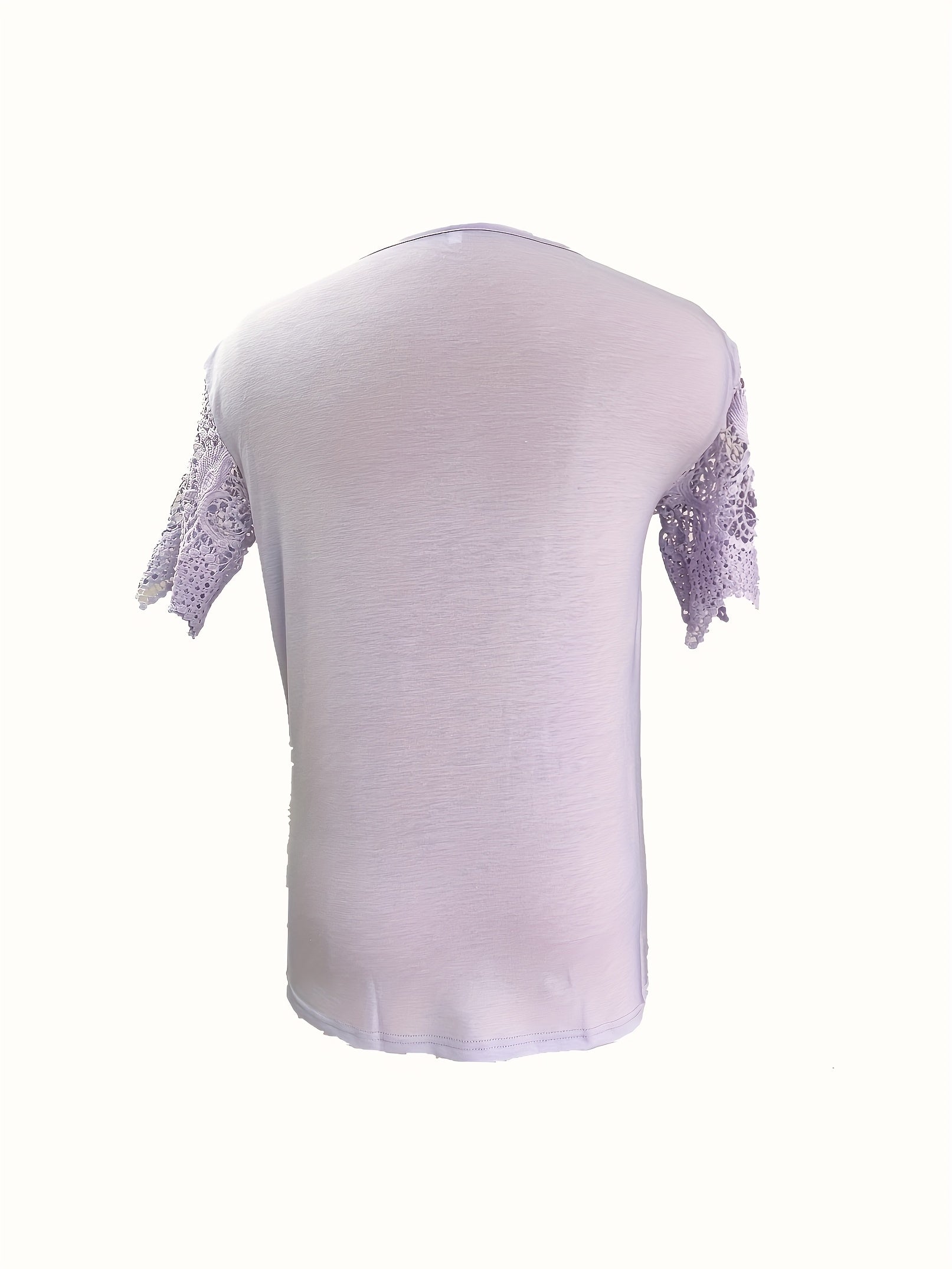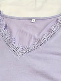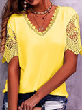 Pure Color Lace Patchwork Short Sleeve T-shirt