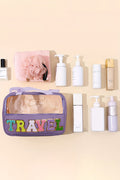 Purple TRAVEL Chenille Letter Clear PVC Makeup Bag