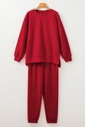 Racing Red Solid Color High Low Pullover and Skinny Pants Set
