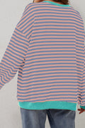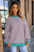 - It’s a worthy to have classic sweatshirt for fall winter.The striped pattern gives a timeless silhouette.Contrast ribbed trim is elastic and cling fit to the body.The relaxed fit style and drop shoulder design give laid-back vibe.