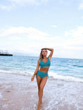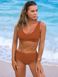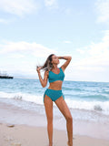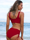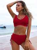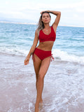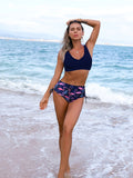 Sale Women's High-Waisted Beachwear Set With Color Block Contrast Band Two-Piece Drawstring Swimwear